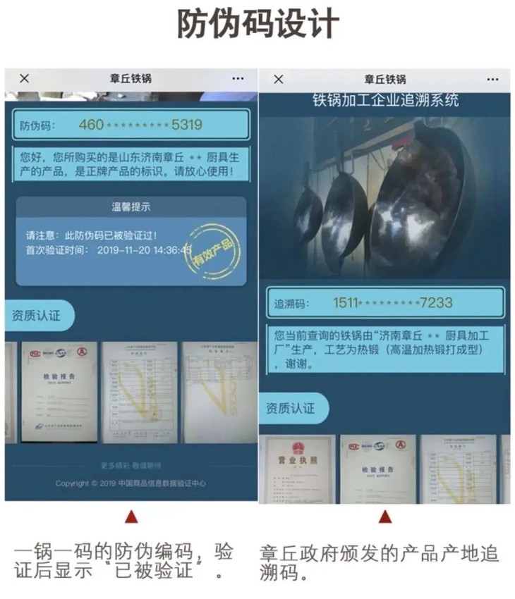 每口章丘铁锅的包装上都有官方溯源的二维码。