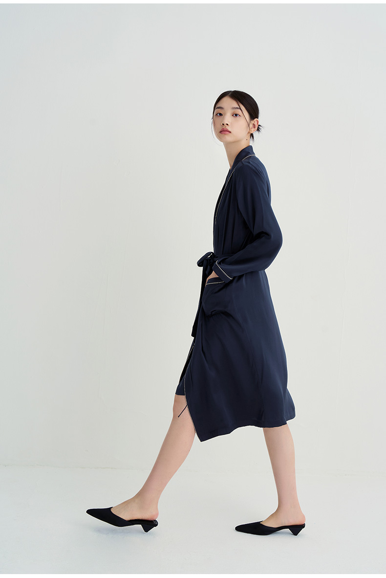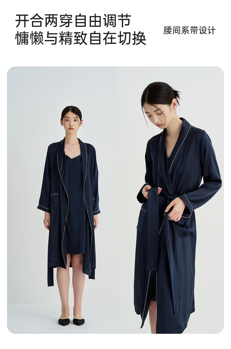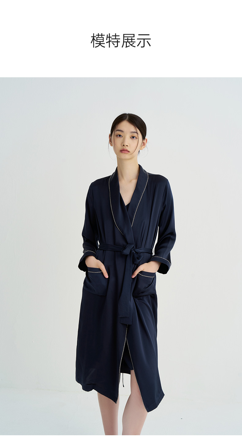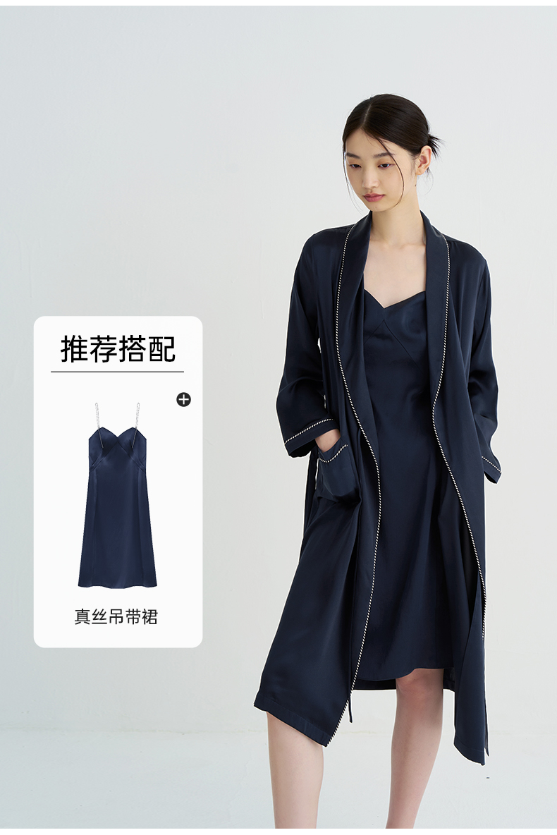 清冷优雅』桑罗23姆米重磅真丝晨袍100%桑蚕丝睡衣女家居服可外穿