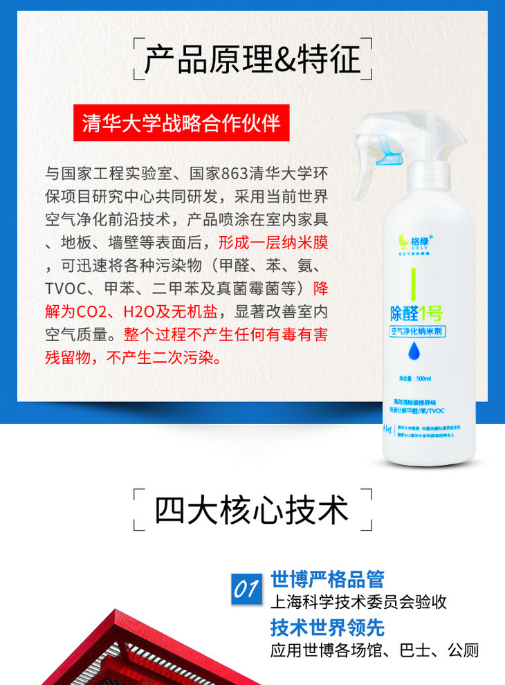 【格绿除醛1号 空气净化纳米剂】快速分解 不反弹 高效纳米剂 无毒无味,买1瓶送1个测试盒 买3瓶送3个测试盒