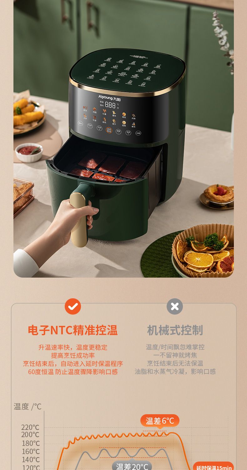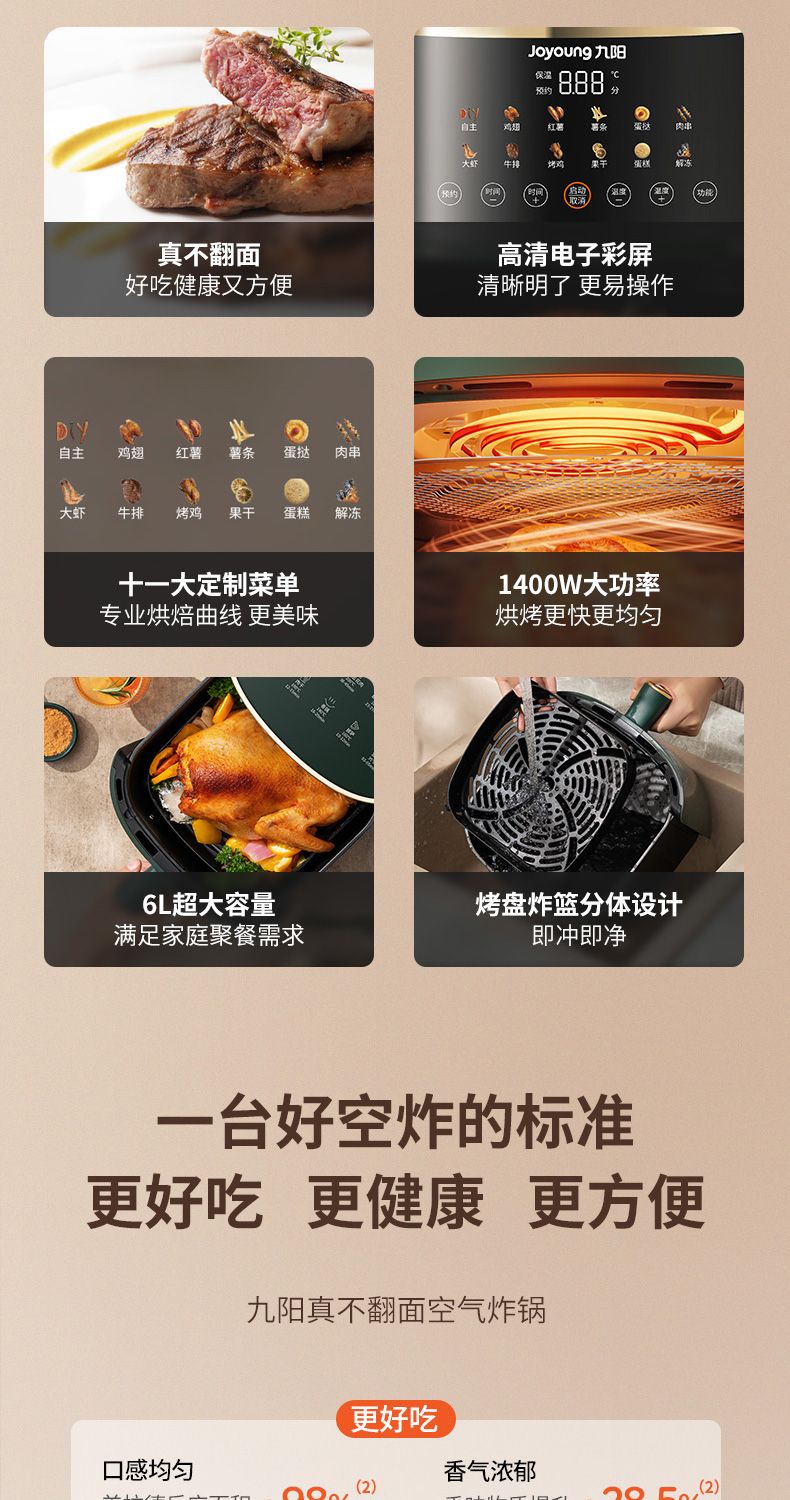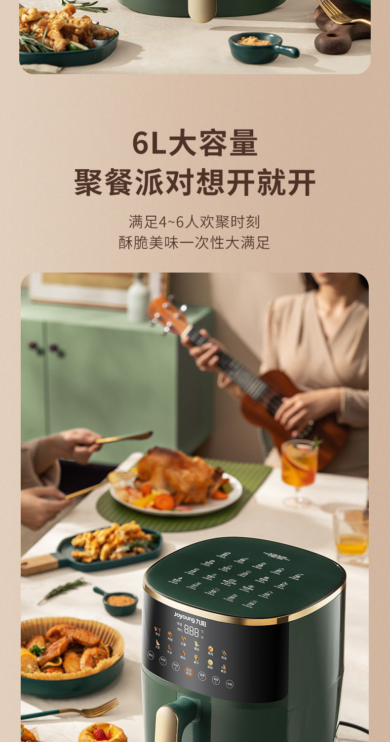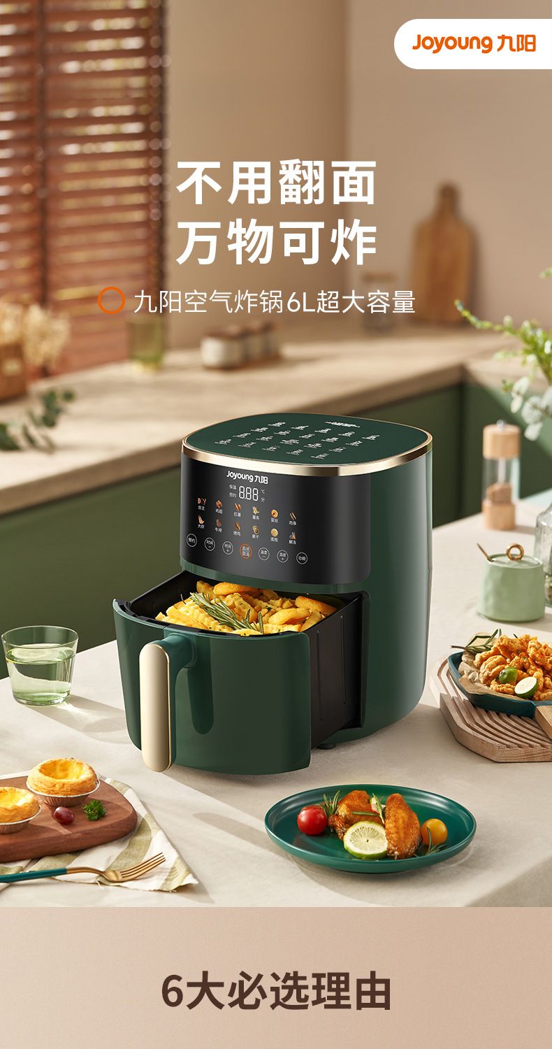 Joyoung/九阳6升L空气炸锅家用不用翻面全息触控彩屏定时温控多功能电炸锅VF506