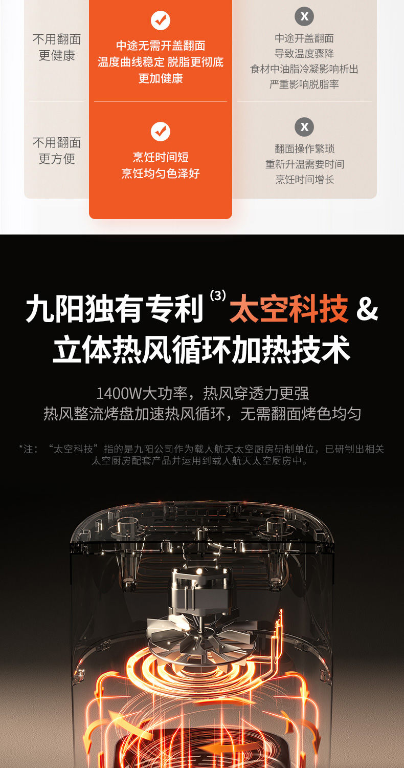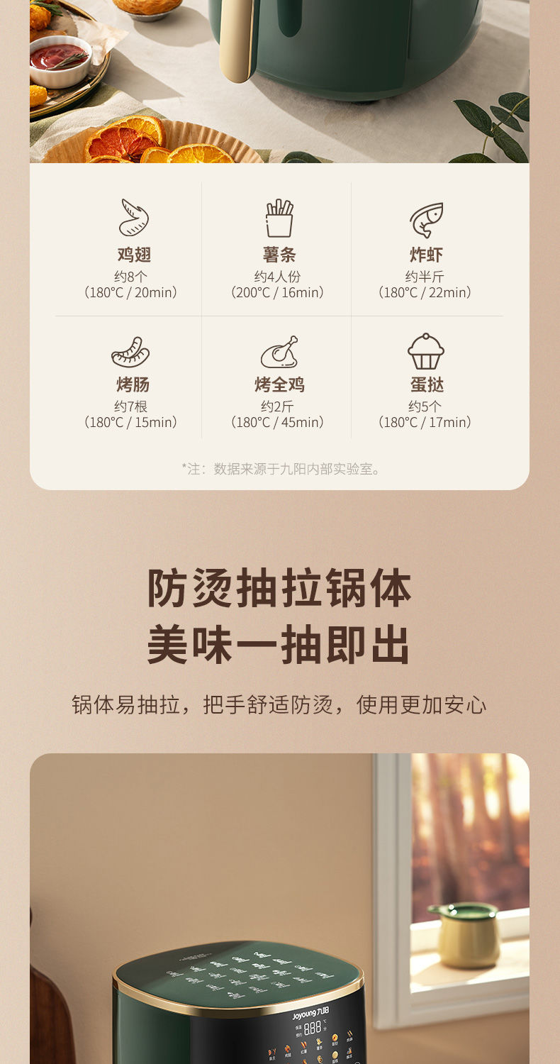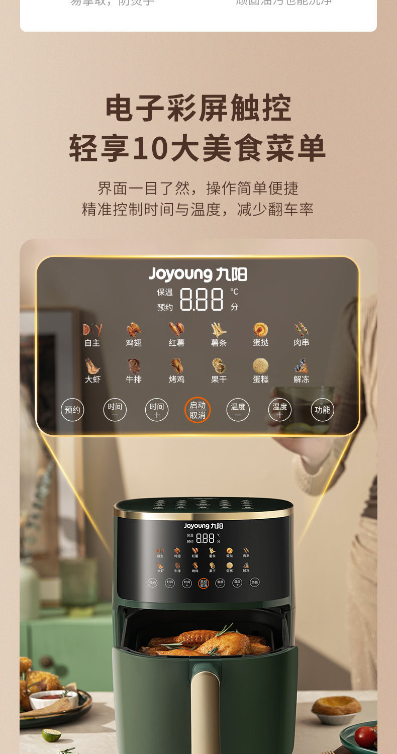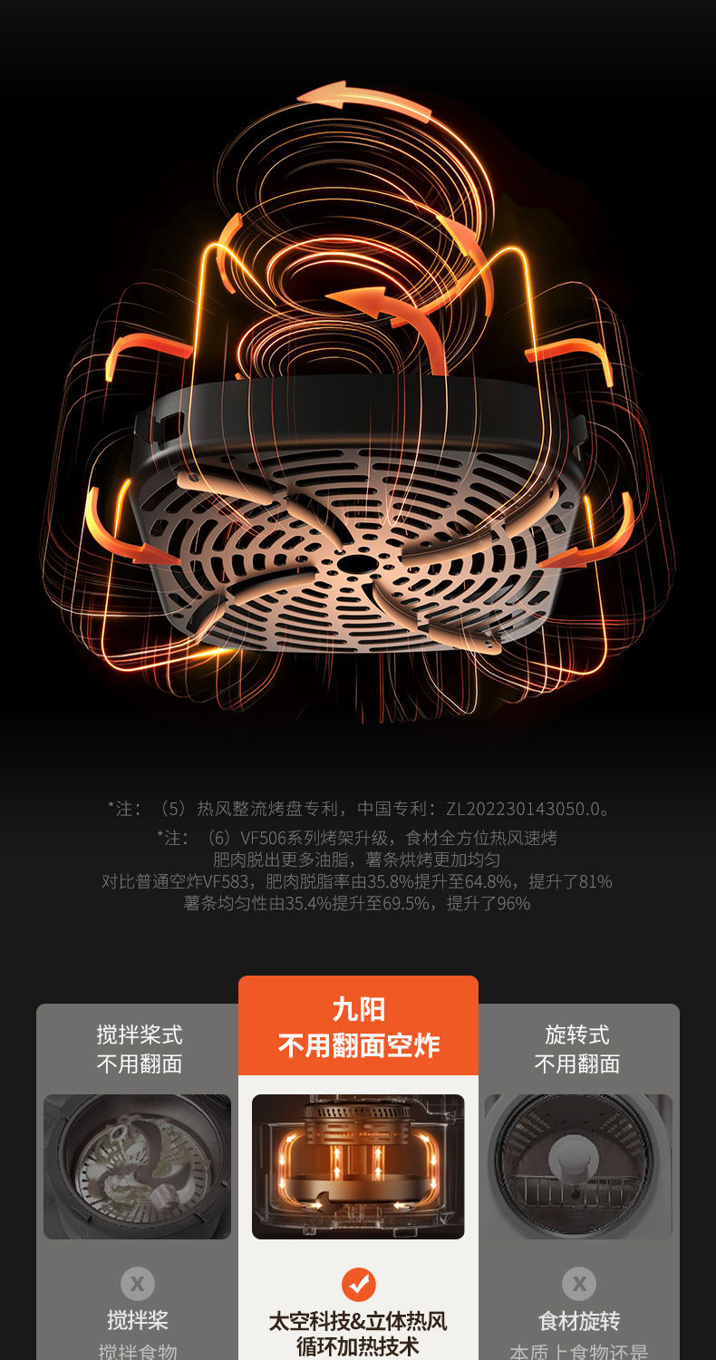 Joyoung/九阳6升L空气炸锅家用不用翻面全息触控彩屏定时温控多功能电炸锅VF506