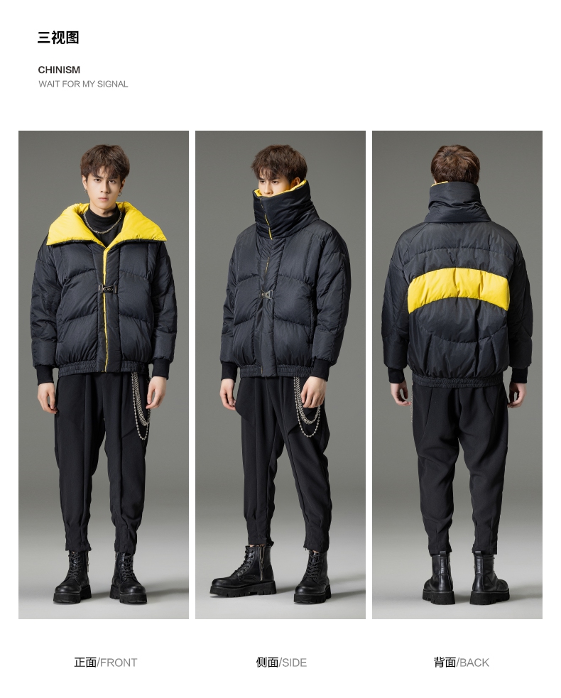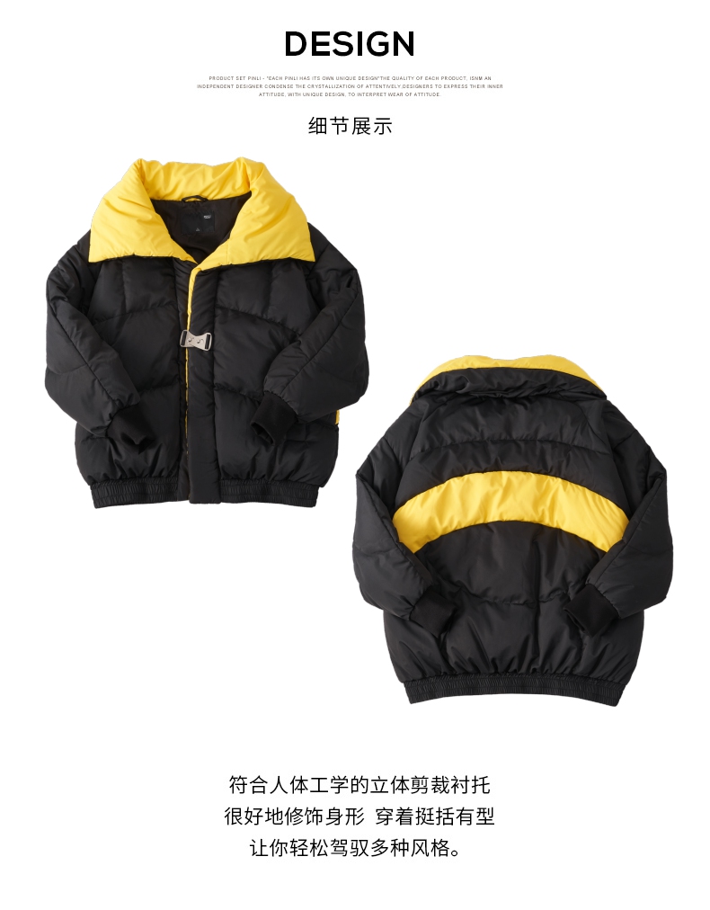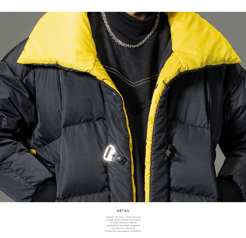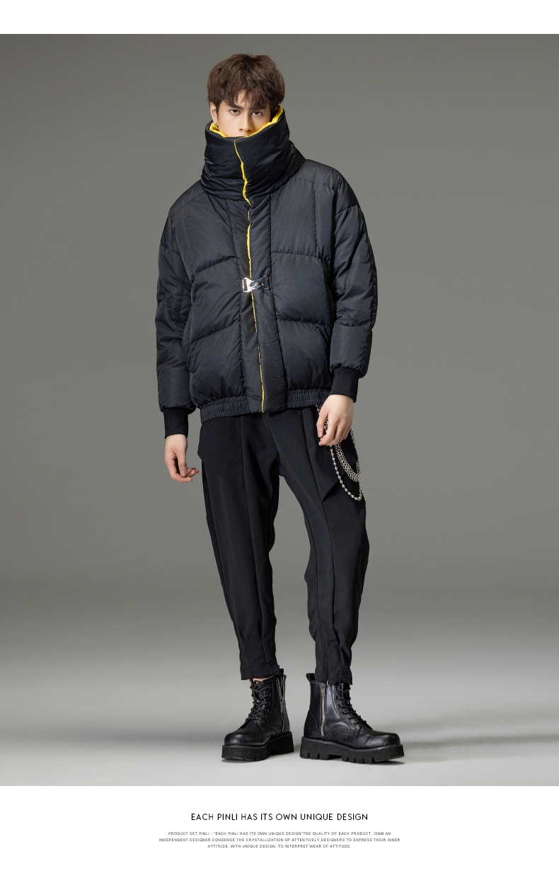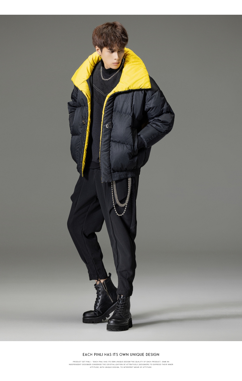 PINLI品立秋冬新品大翻领撞色羽绒服男士宽松休闲短款外套潮B233108055
