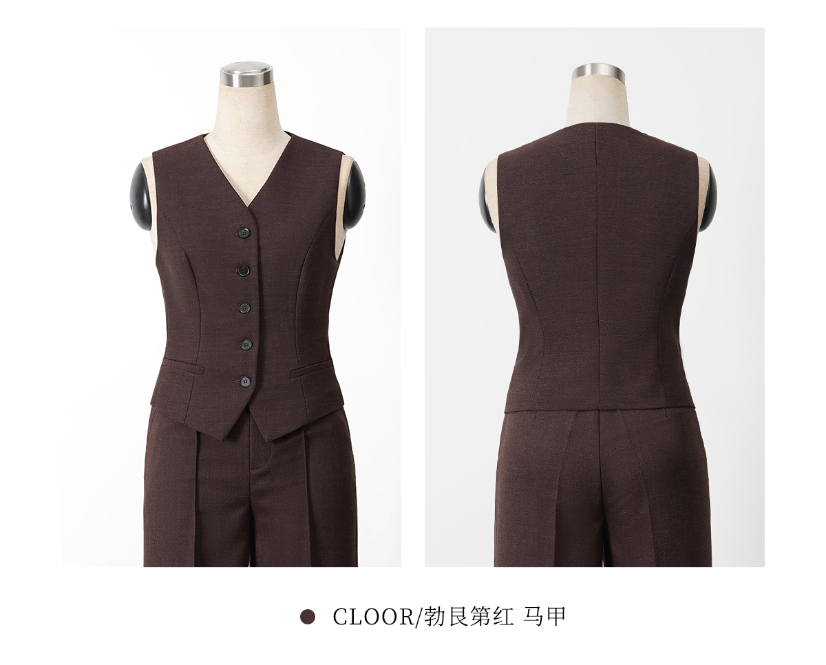 艾尚臣高级感时尚套装女秋冬新款勃艮第红西装外套气质马甲三件套