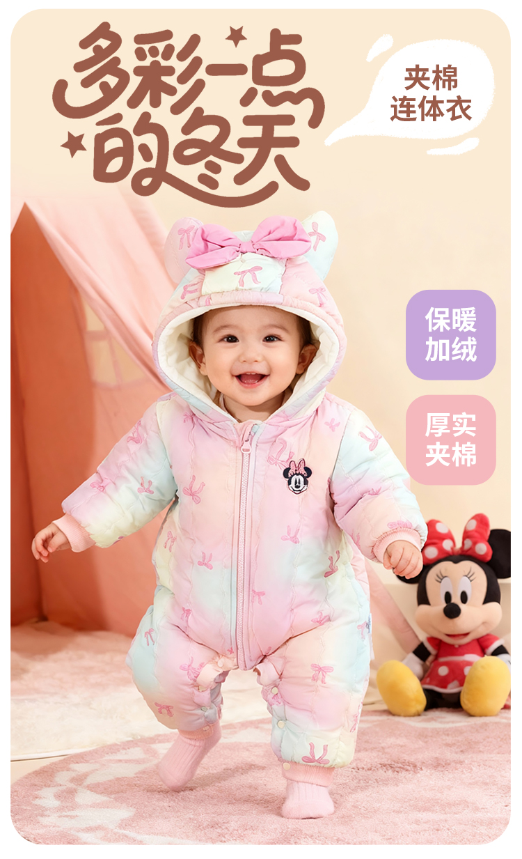迪士尼儿童太空棉哈衣女童夹棉连体衣ZD4EL028