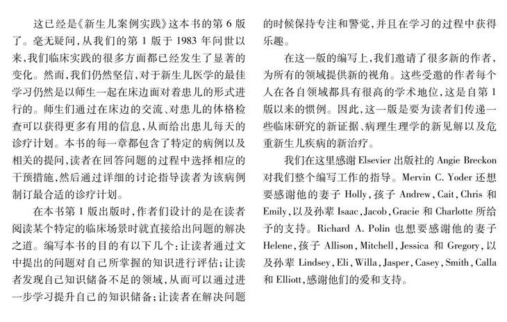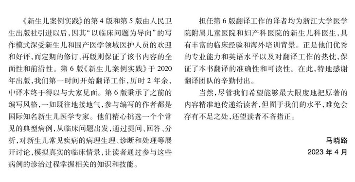 《新生儿案例实践》第6版精选典型案例,从临床问题出发,通过提问、回答、分析,对新生儿常见疾病的病理生理、诊断和处理等展开讨论。对于临床实践中的一些常见问题,譬如心肺复苏、机械通气、贫血、液体治疗、支气管肺发育不良等,读者都可以找到权威的指导意见。新版进行了广泛的修订,邀请了部分新的作者,更新了内容,优化了图表,增加了很多新的案例。