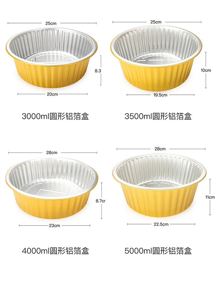 喇叭花一次性锡纸盒烧烤圆方形铝箔锡纸盘外卖打包烤鱼可封口125只