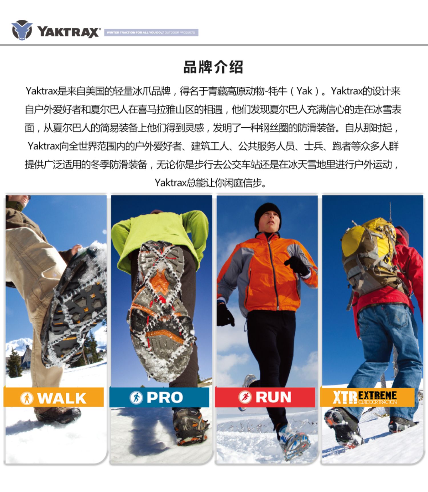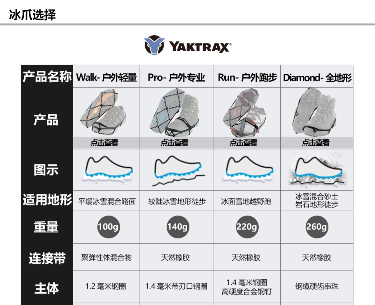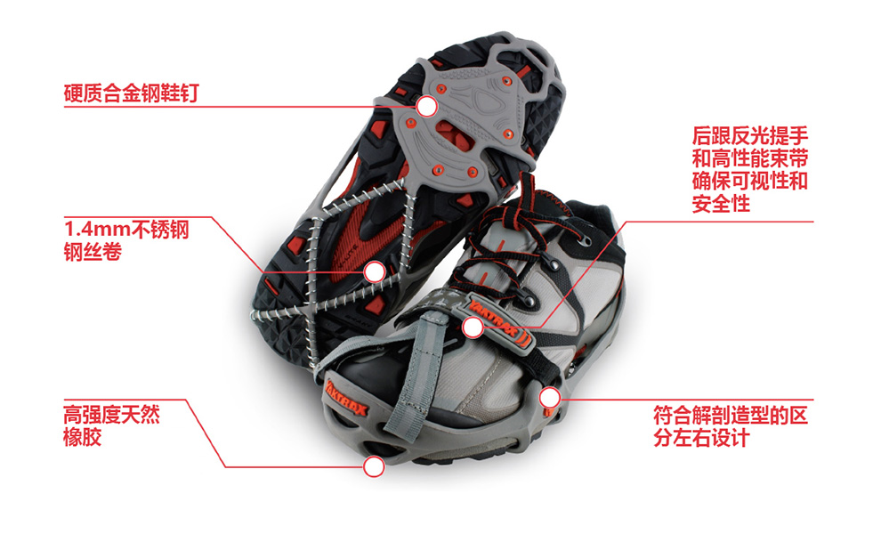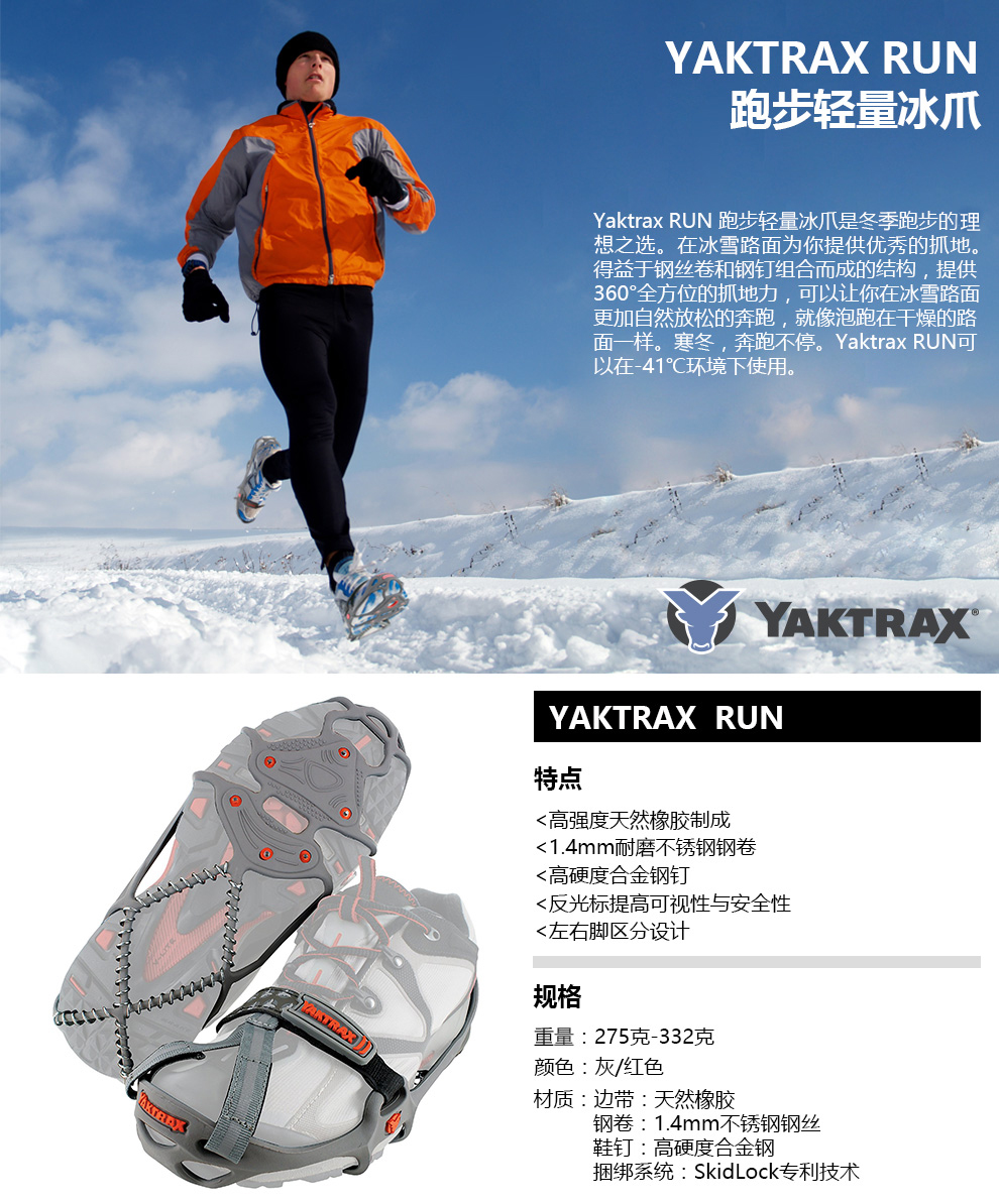 YAKTRAX雅途 RUN 户外跑步冰雪防滑鞋套轻量耐磨钢卷带钉冰爪