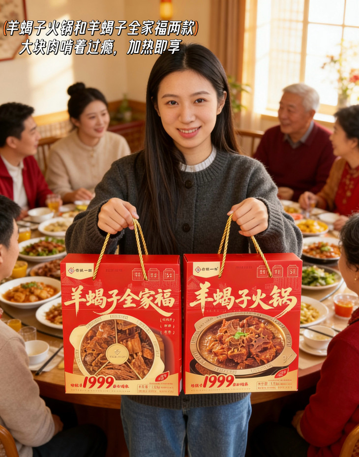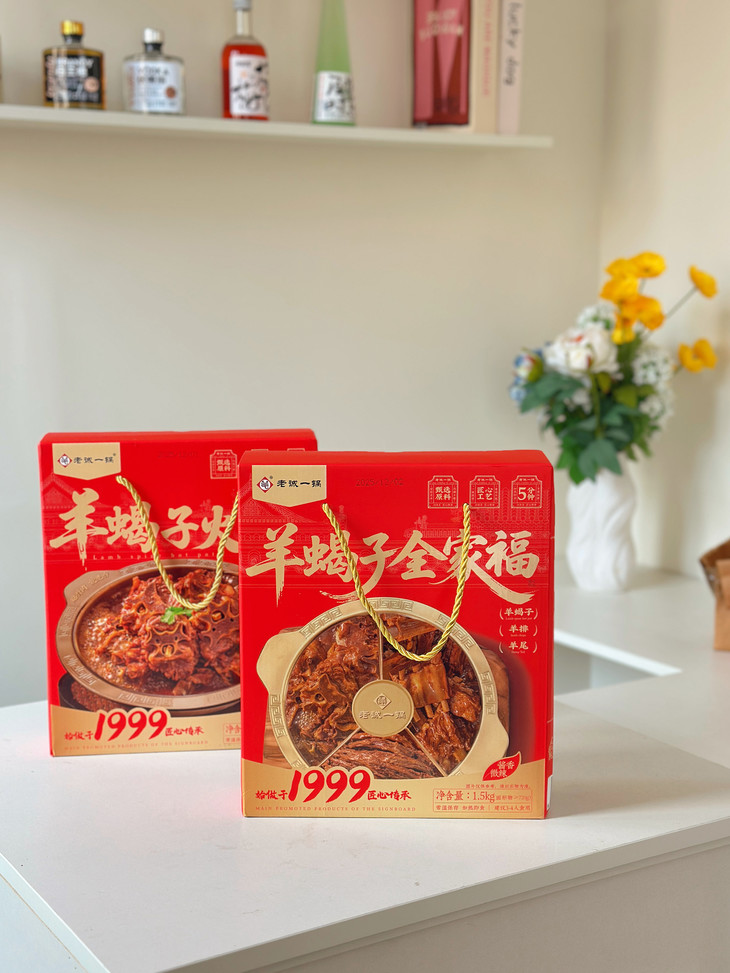 红彤彤的礼盒搭配热气腾腾的羊蝎子锅,自带团圆喜庆感。不管是家庭小聚还是朋友聚餐,摆上这份老诚一锅羊蝎子全家福,瞬间让餐桌热闹起来,美味与仪式感双在线。