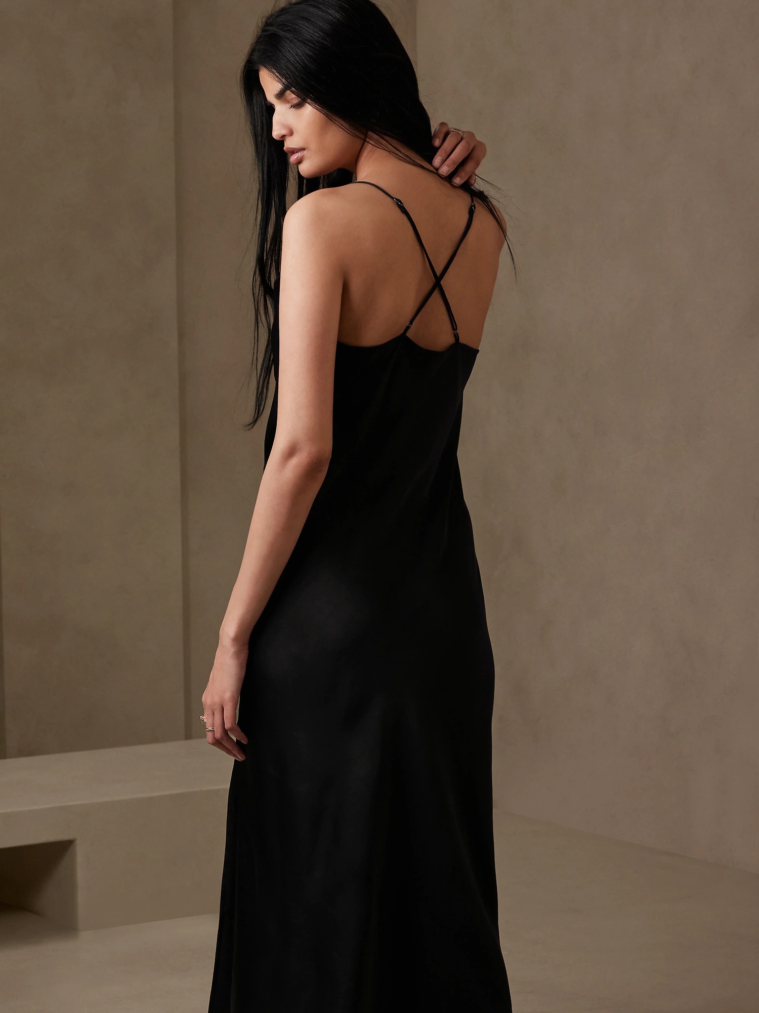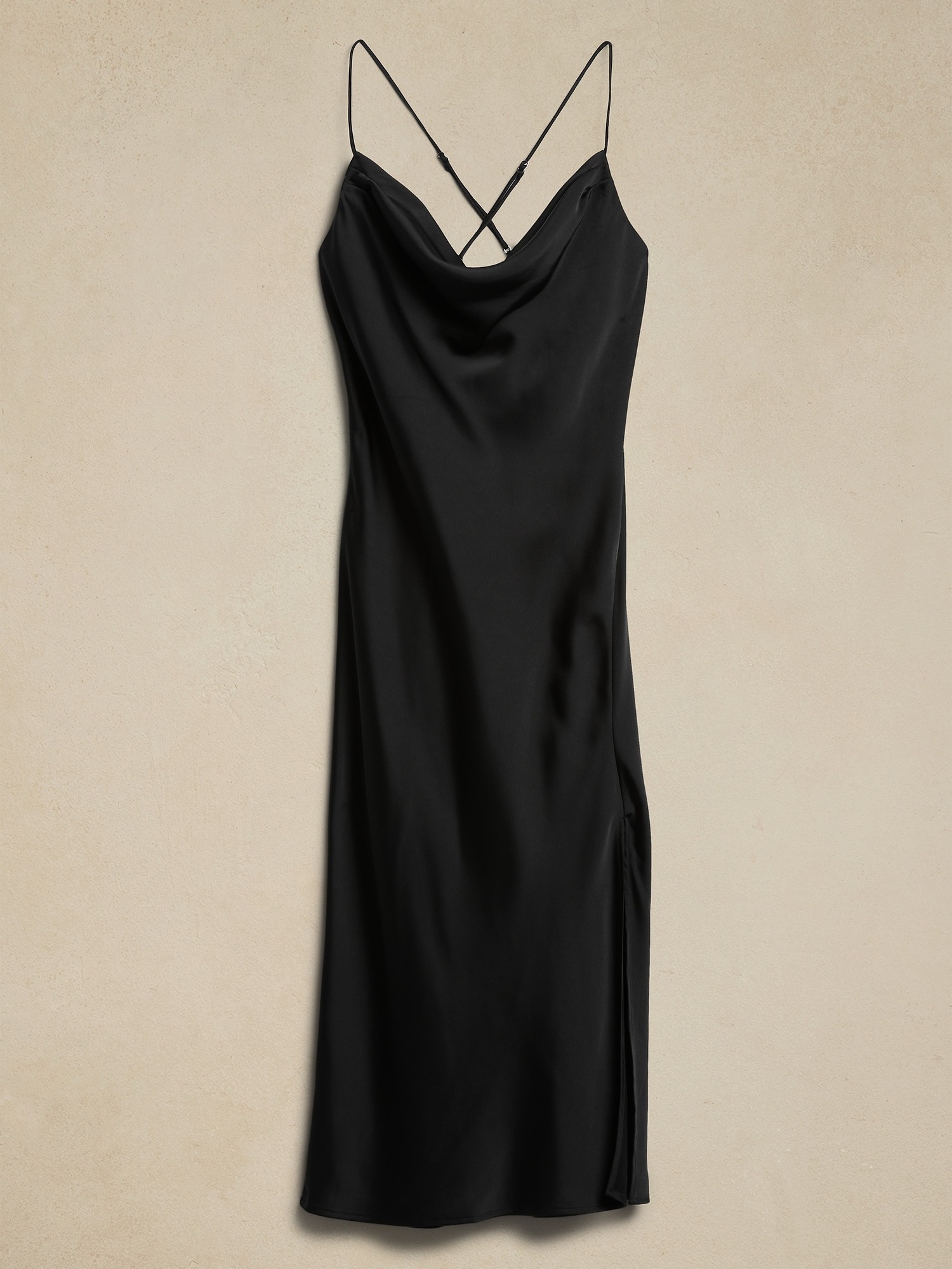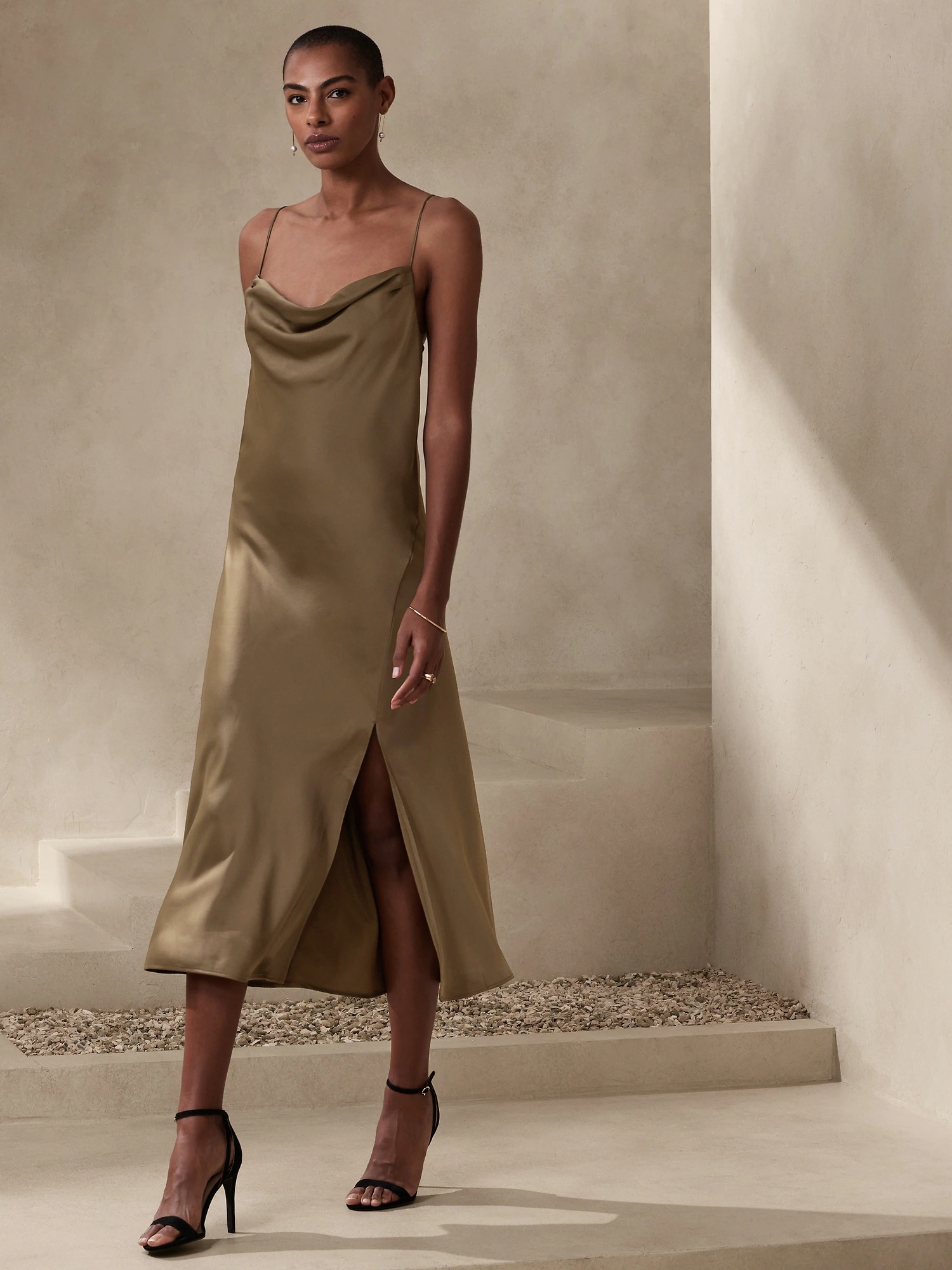 ¥540到手!BR香蕉共和国 新款女士开叉中长款丝绸吊带裙3色可选,尺寸全。