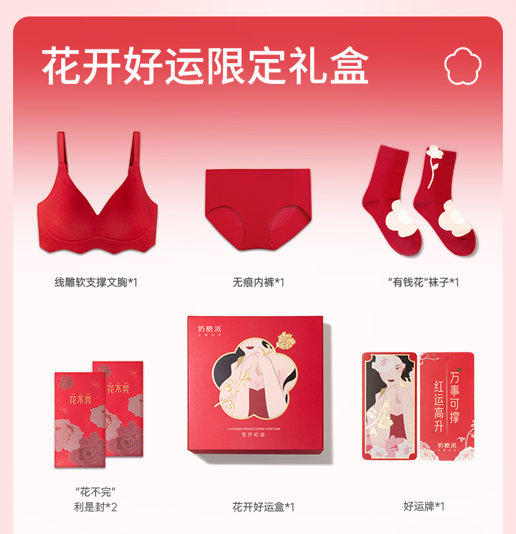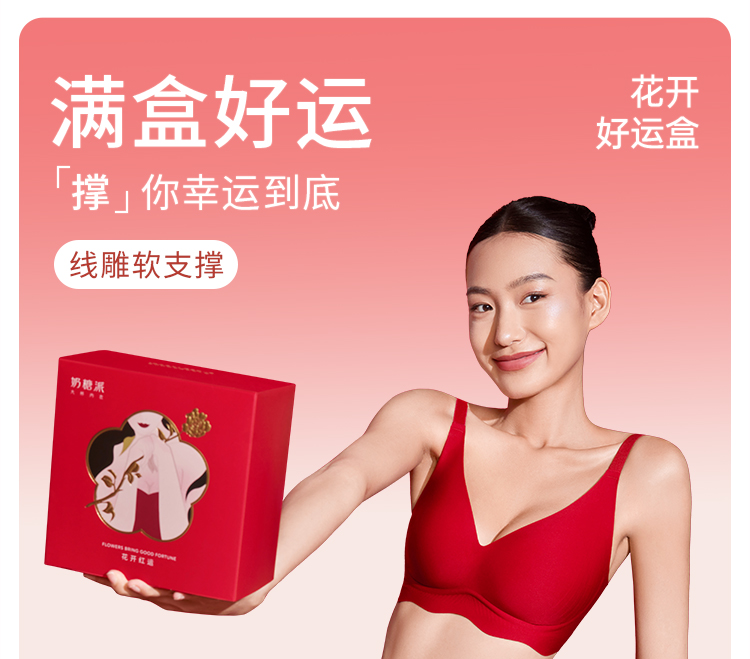 奶糖派线雕软支撑果冻条大胸显小红品礼盒无钢圈文胸无痕内衣胸罩