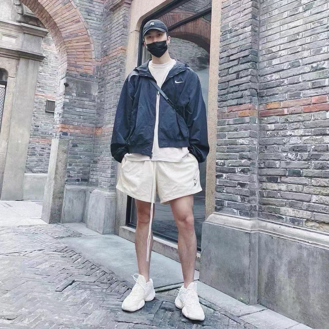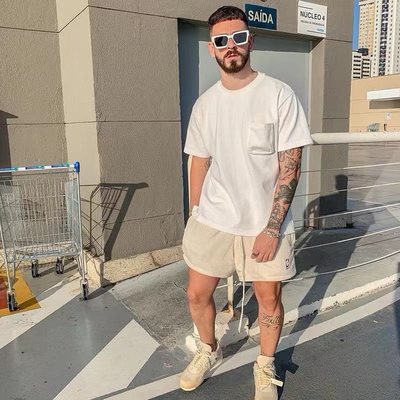 F032331春季新款刺绣小标抽绳透气网眼速干休闲短裤