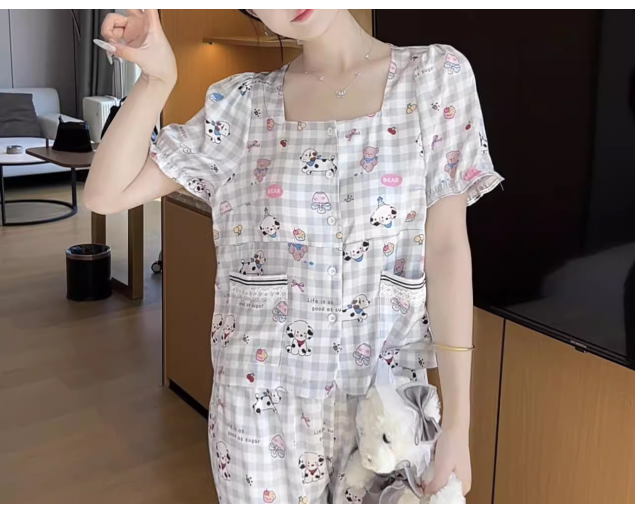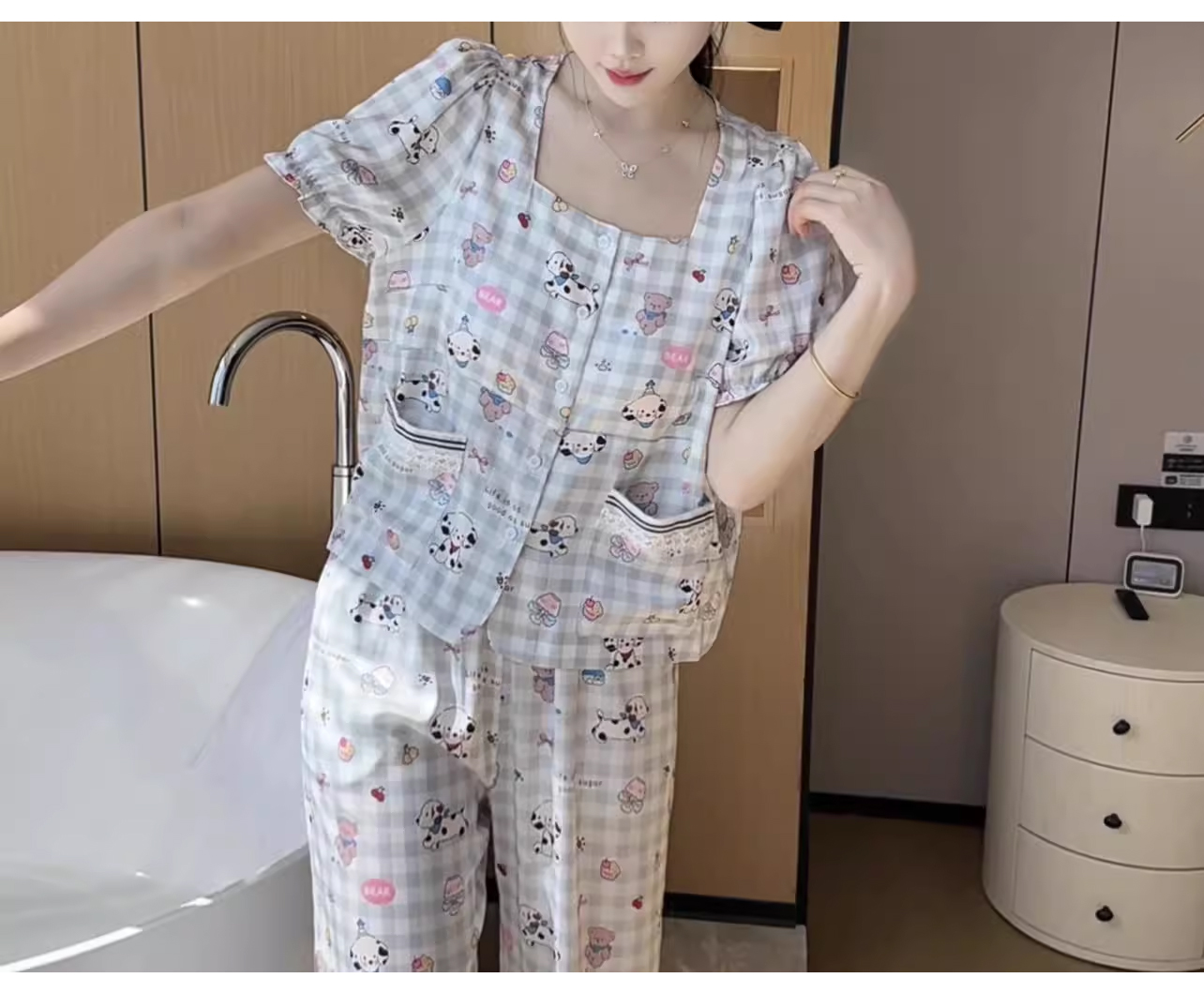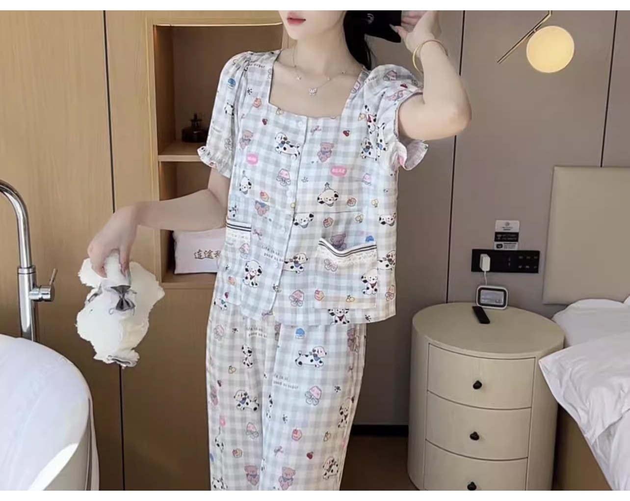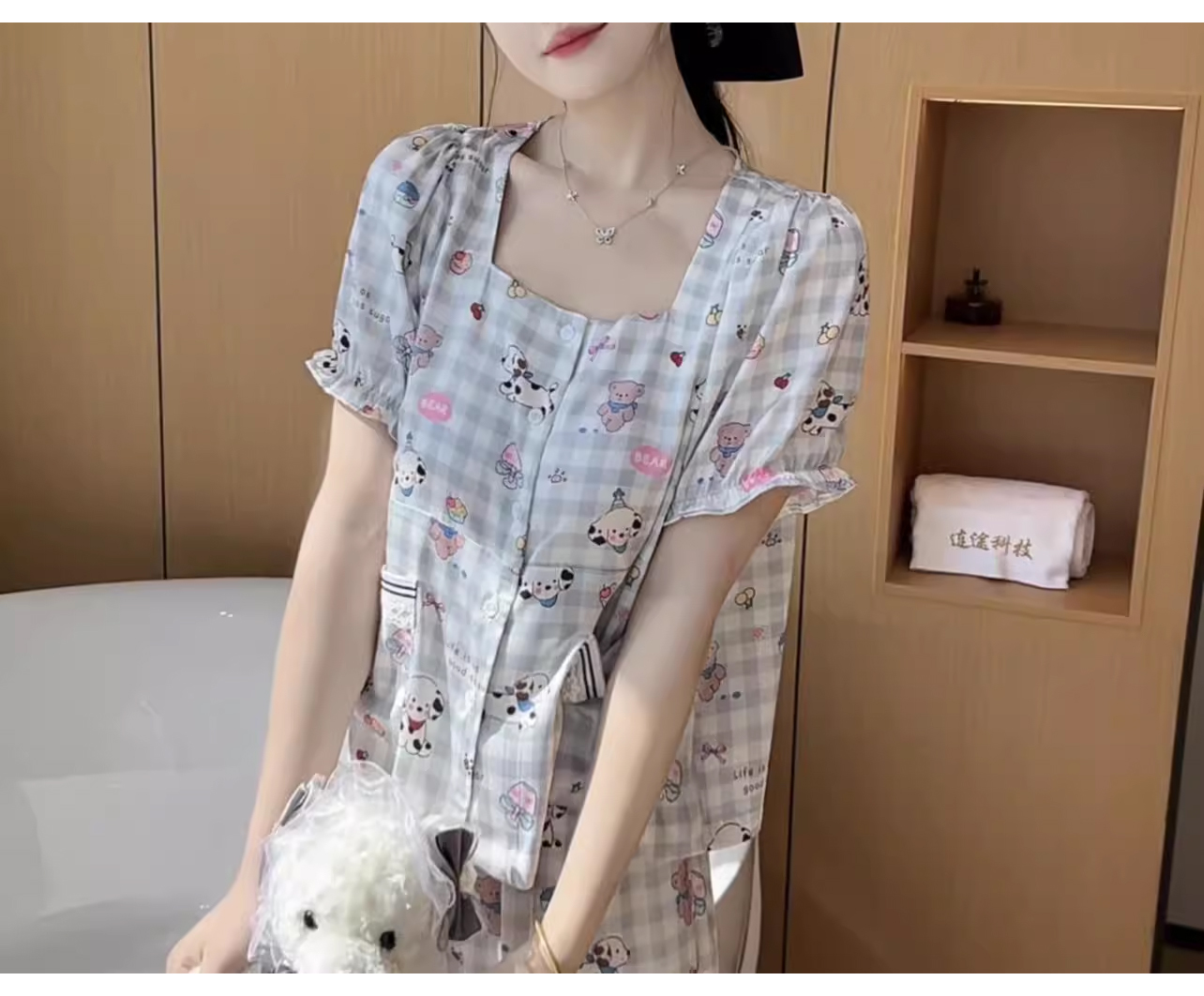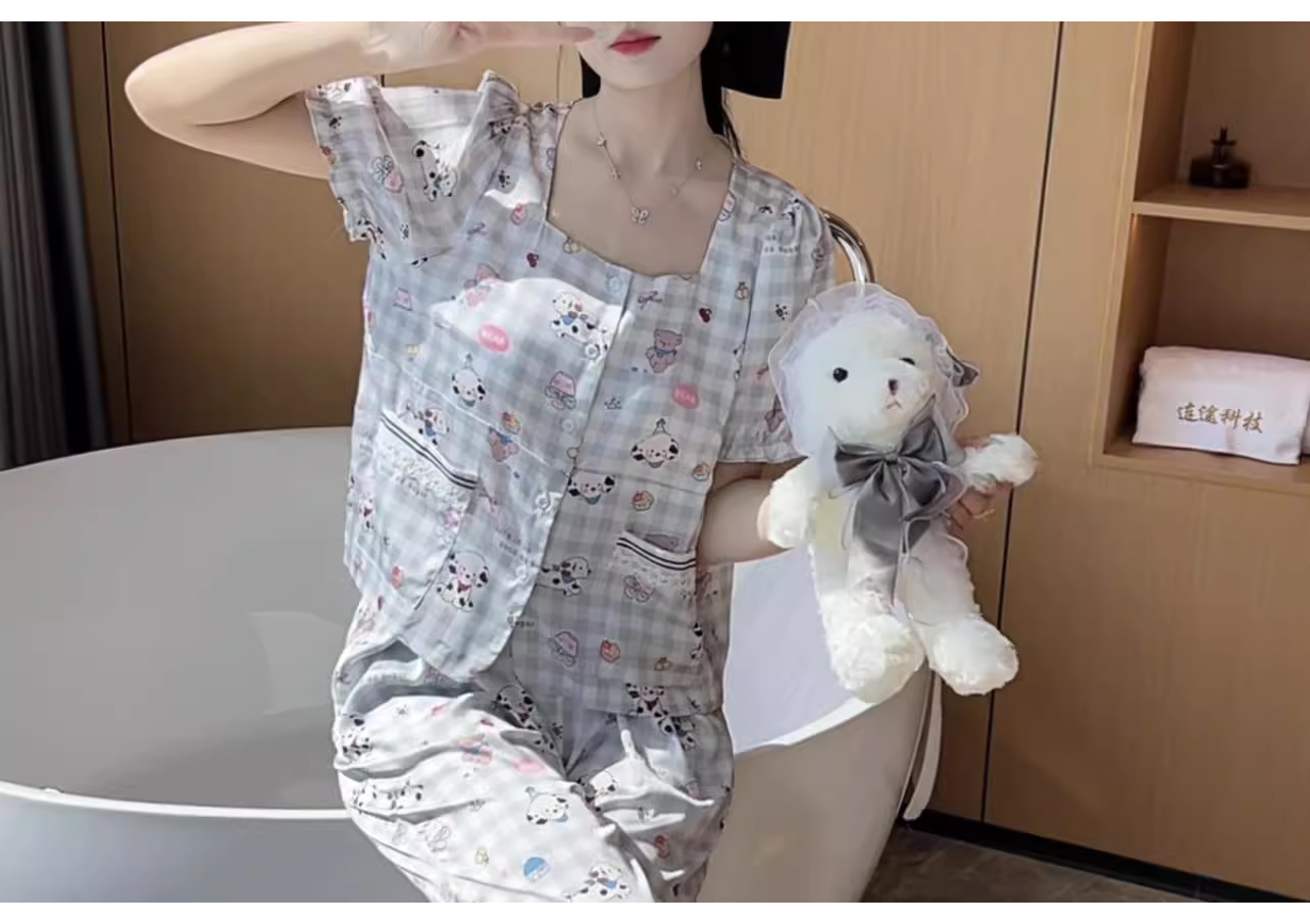 裁缝学苑AQ392休闲柔软透气睡衣女可爱显瘦小狗带胸垫可外穿家居服