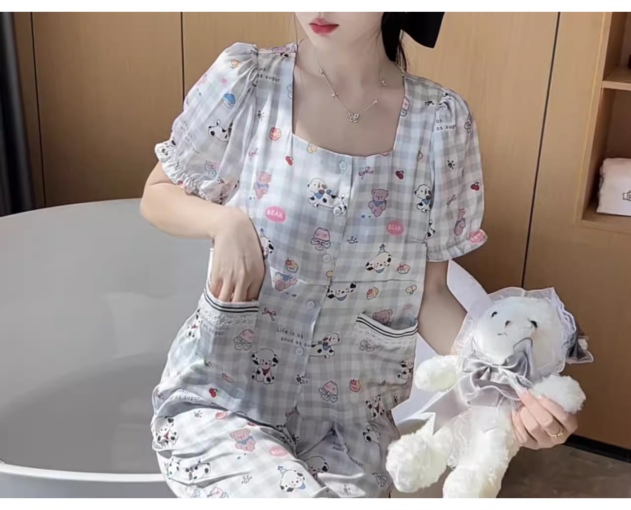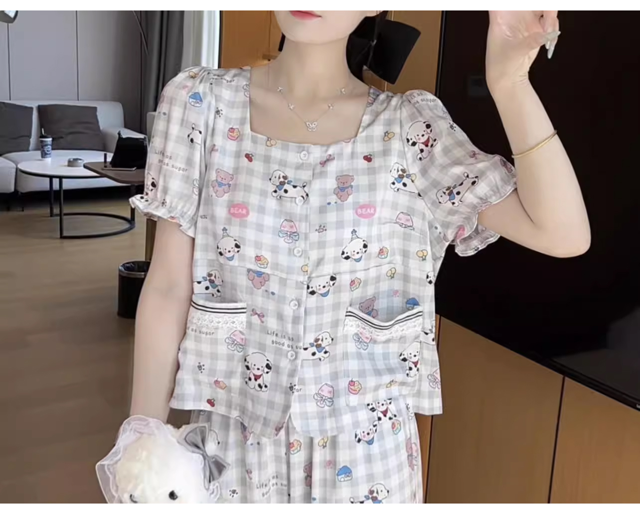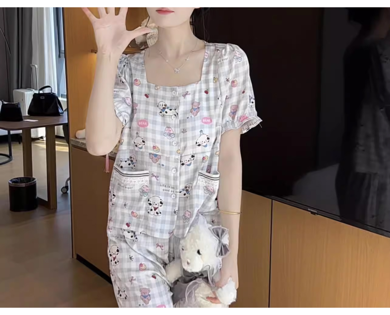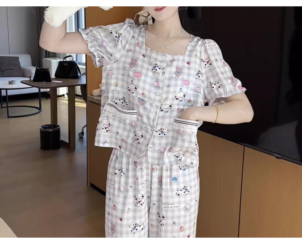 裁缝学苑AQ392休闲柔软透气睡衣女可爱显瘦小狗带胸垫可外穿家居服
