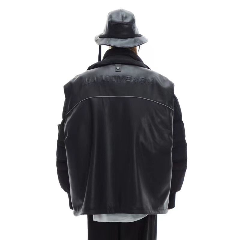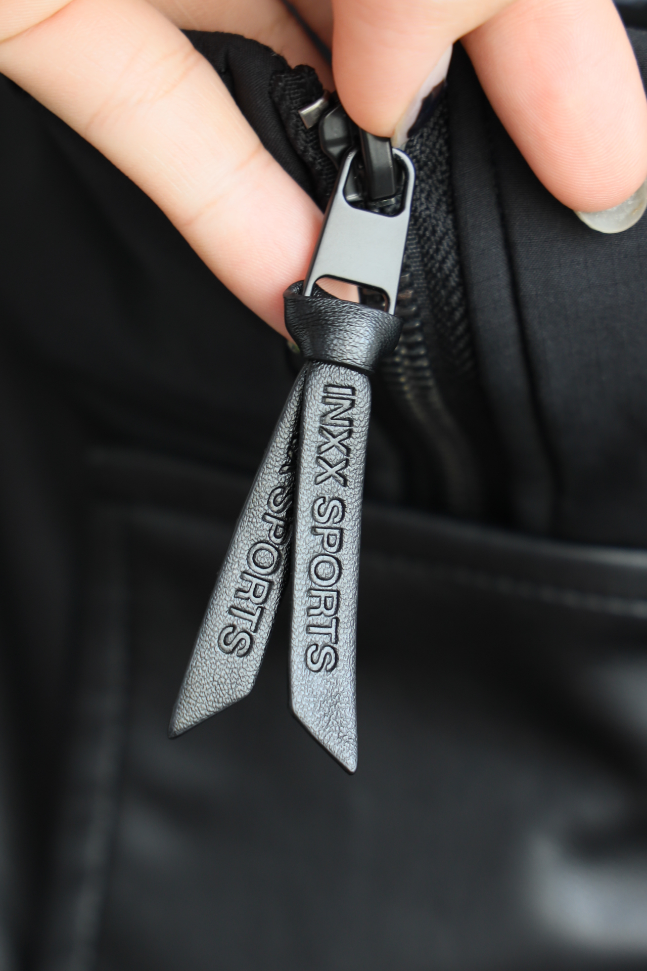 后背钢印立体字母印花,胸口斜插隐形大口袋+两侧斜插袋