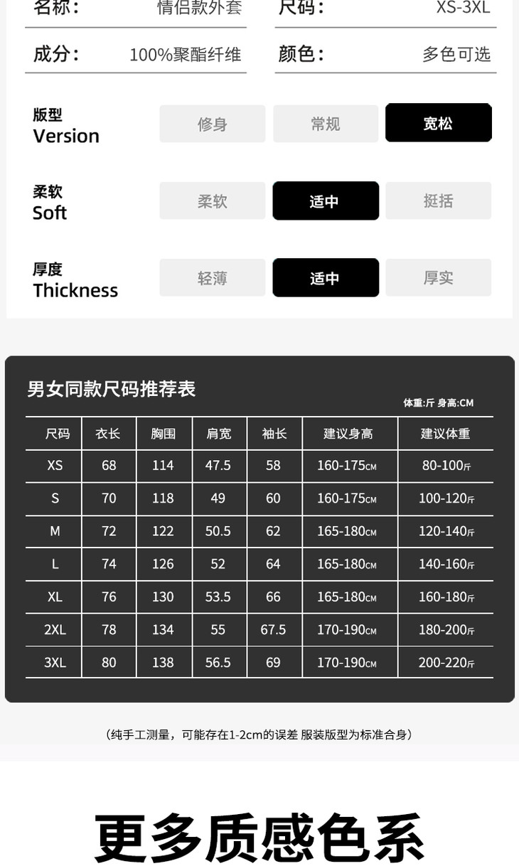 【尺码选择】XS(80-100斤)、S(100-120斤)、M(120-140斤)、L(140-160斤)、XL(160-180斤)、2XL(180-200斤)、3XL(200-220斤)
