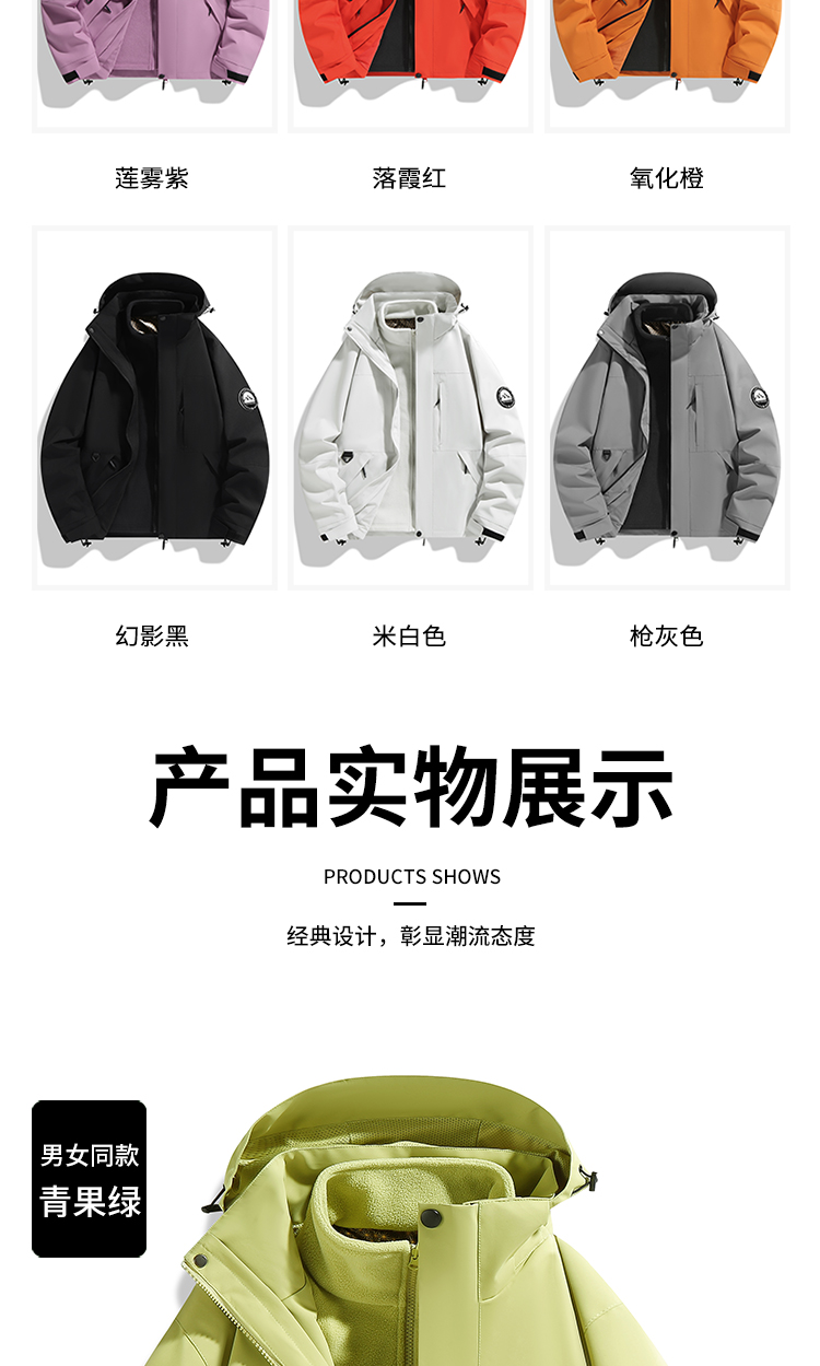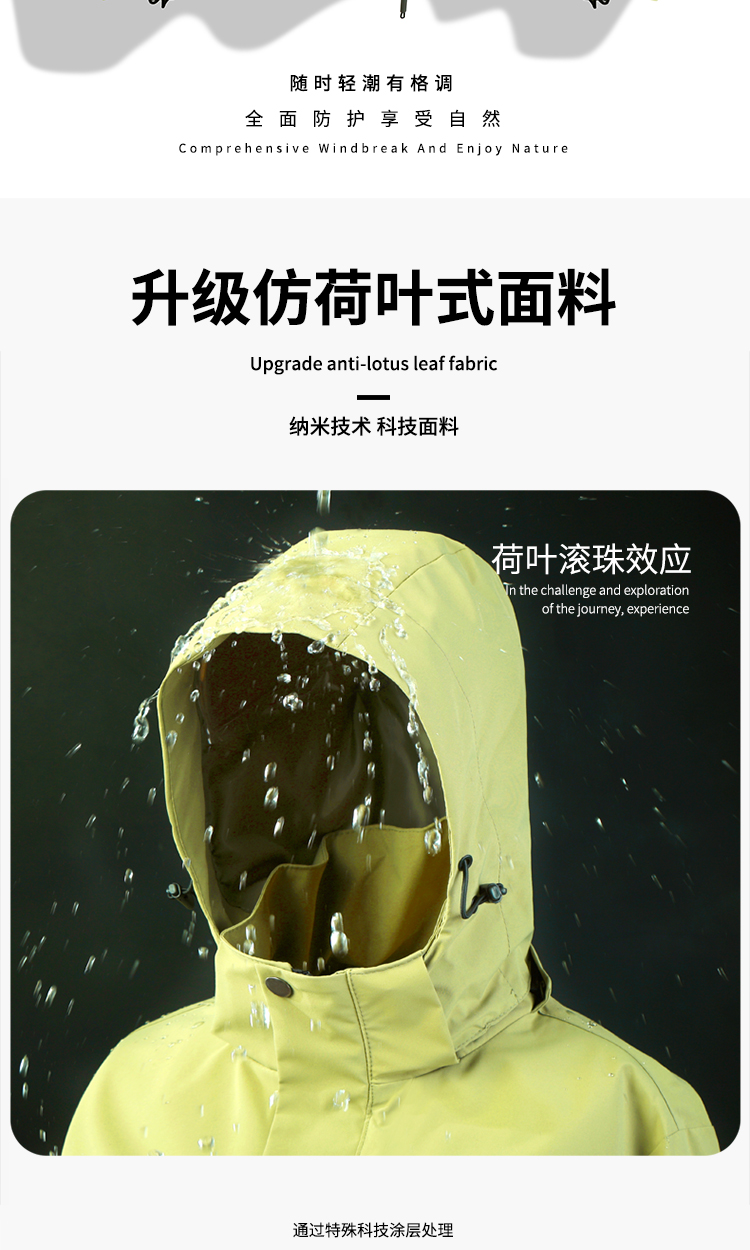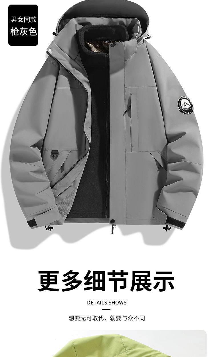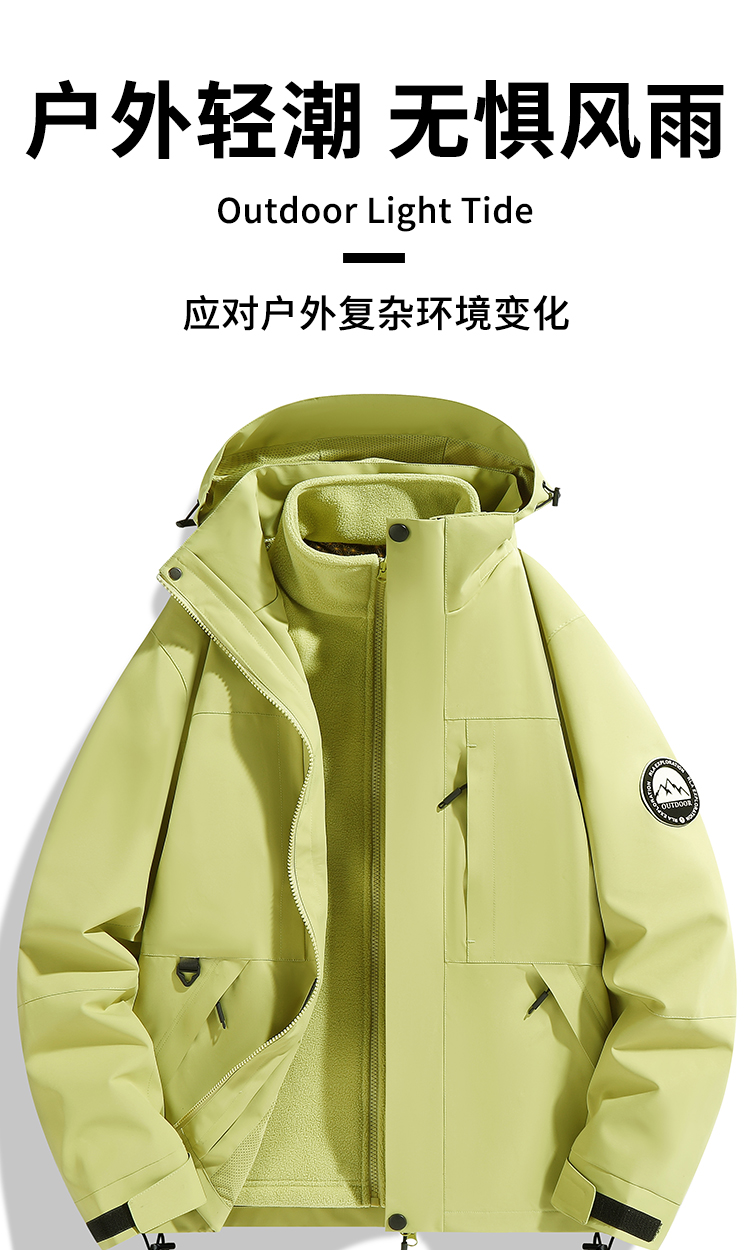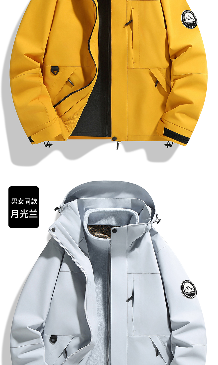 JEEP SPIRIT三合一冲锋外套,纳米技术升级仿荷叶式面料,男女同款时尚百搭