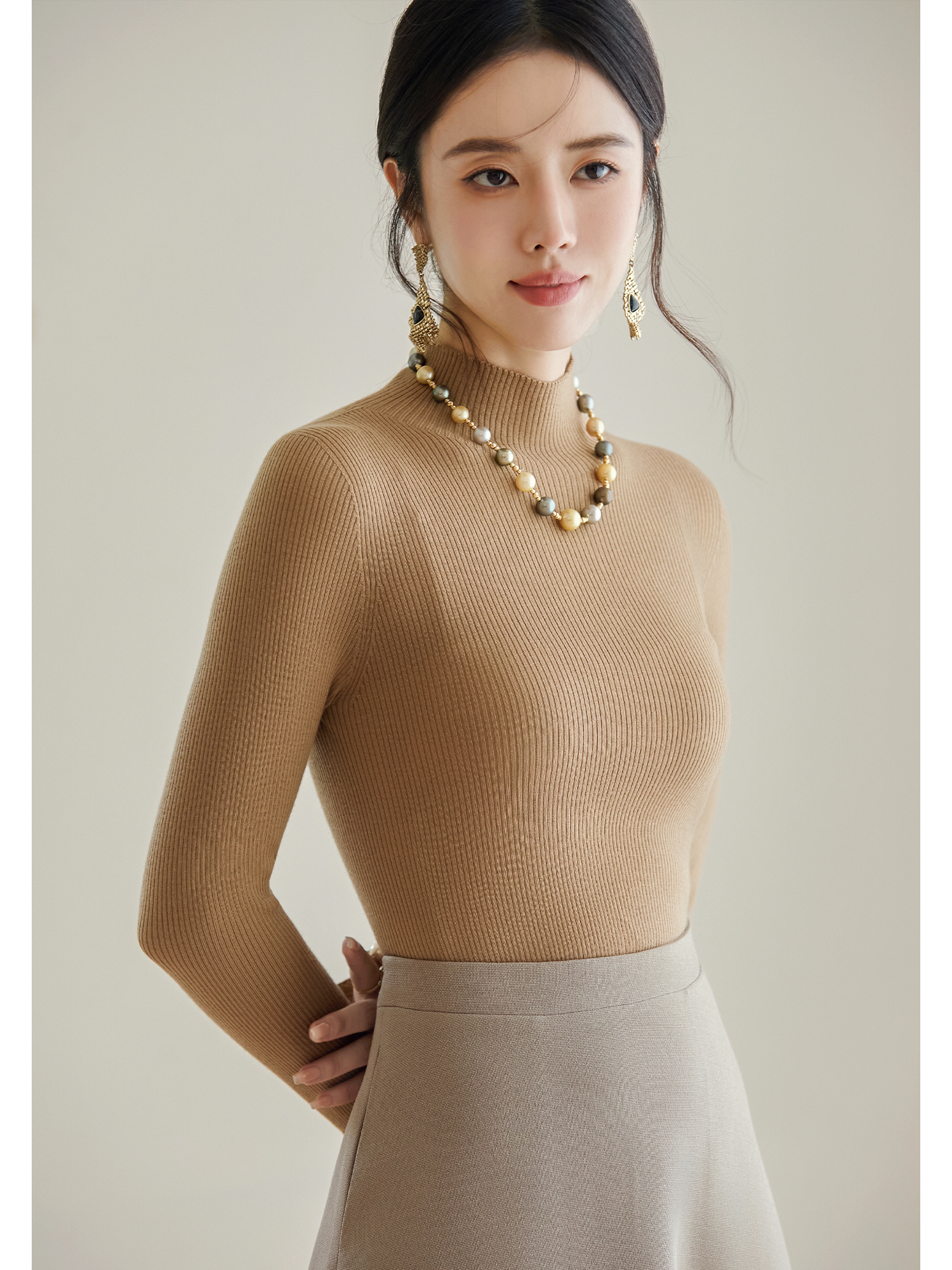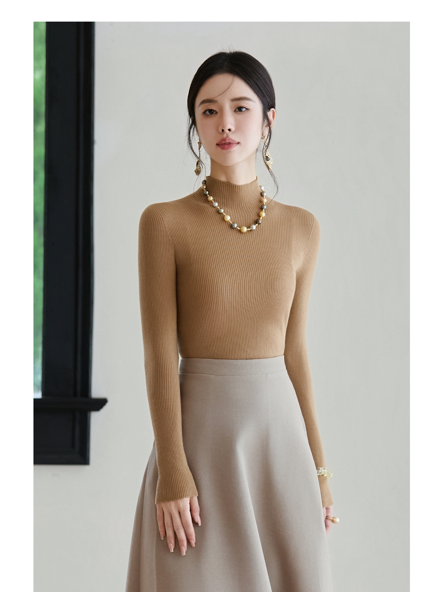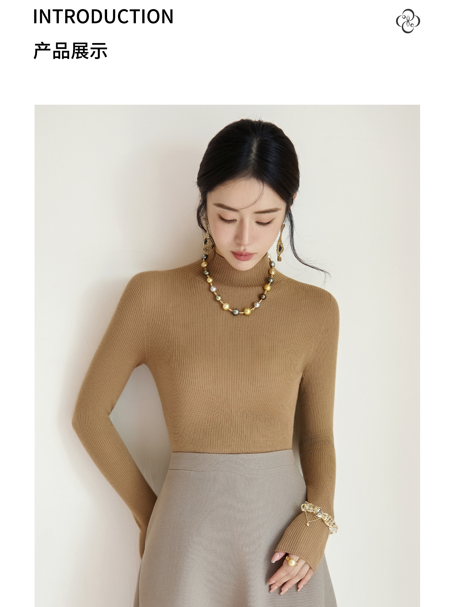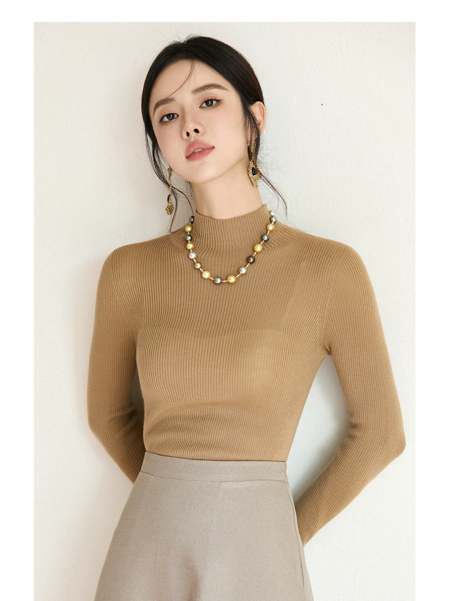 FUYAO扶摇 【100%羊毛】2025年冬新款百搭驼色修身针织衫百搭上衣