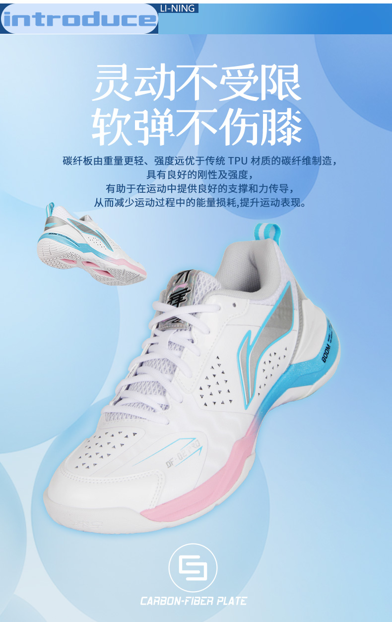 李宁轻量高回弹羽毛球鞋AYZV001 男女同款25款稳定支撑柔软运动鞋刀锋II PRO