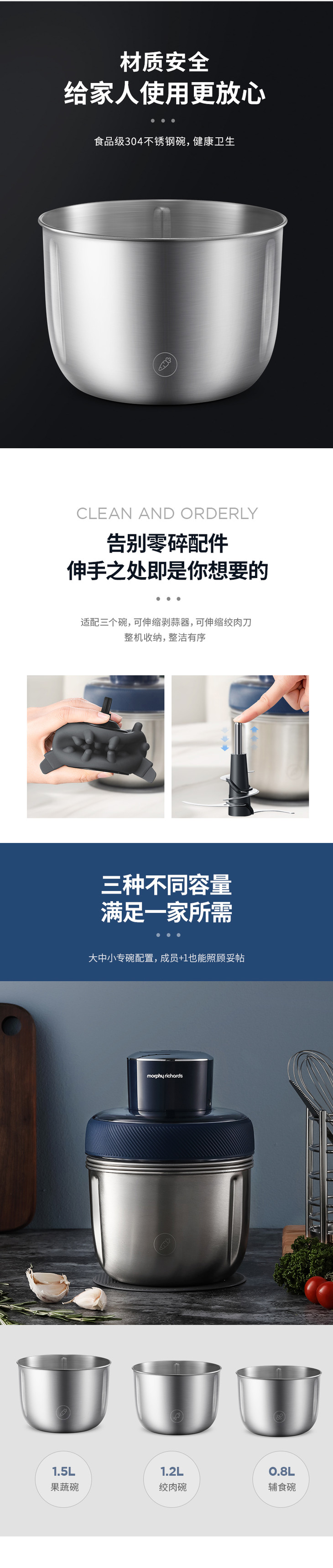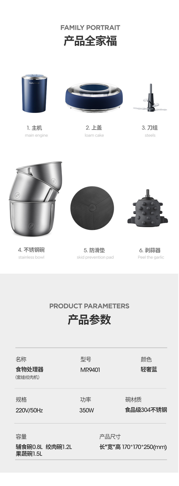 英国摩飞| 舒淇同款 明星代言 摩飞套娃绞肉机家用电动料理机搅拌机碎肉机不锈钢辅食机肉馅机绞馅机 型号:MR9401A (拥有食物处理器3C报告)(付款后三天内发货)