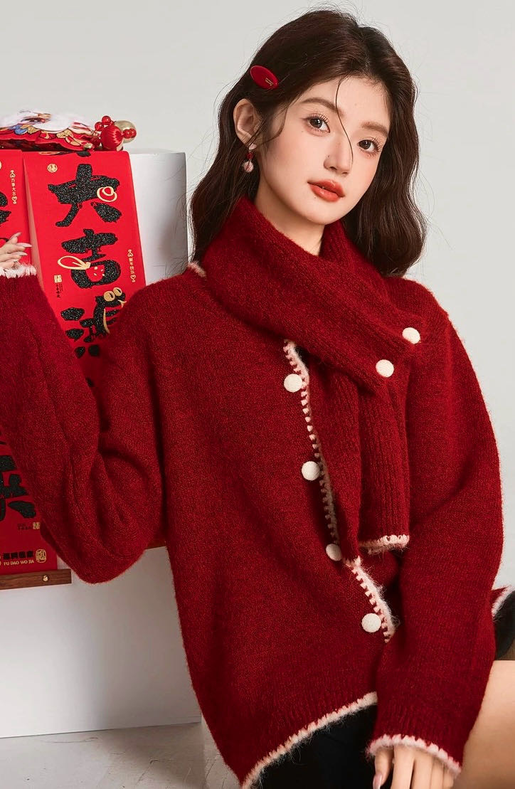 【新年预售:2月24日开始发货】新年战服【LPIUTY 新年红运两件套针织开衫】(3-7天发货)