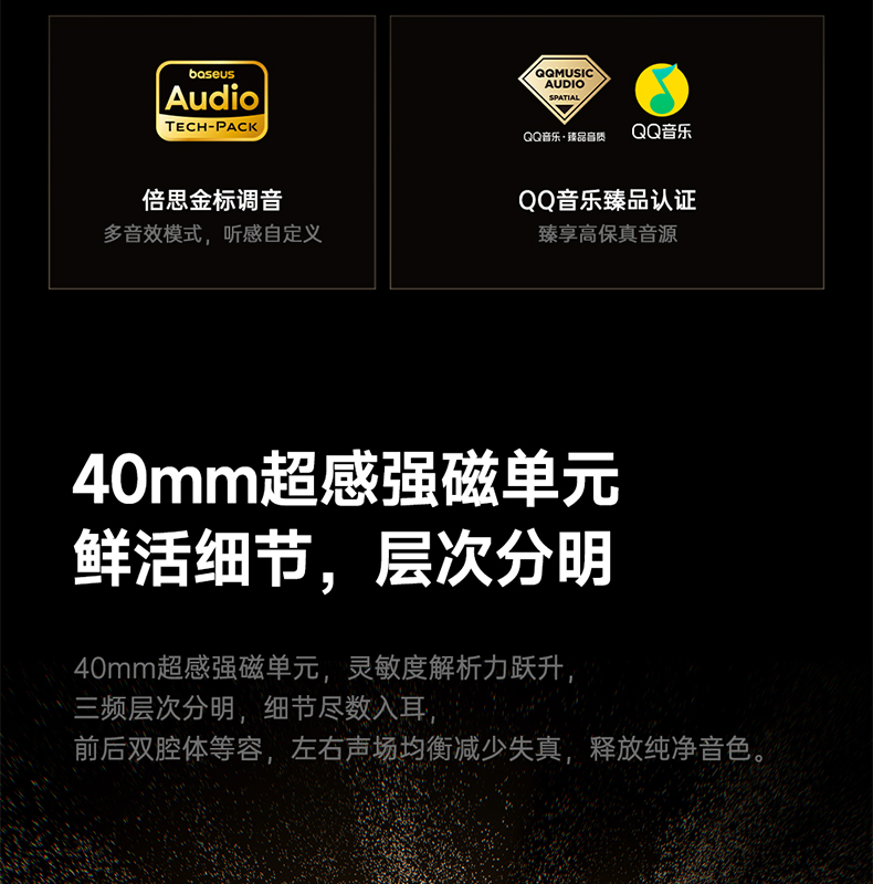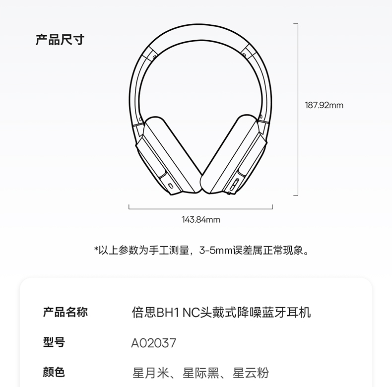 倍思 Bass BH1 NC 头戴式降噪蓝牙耳机