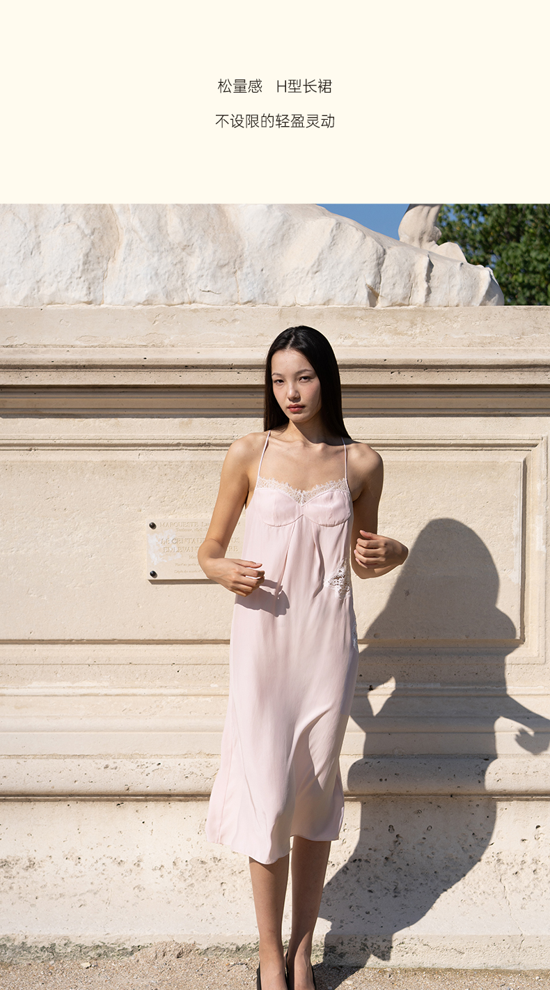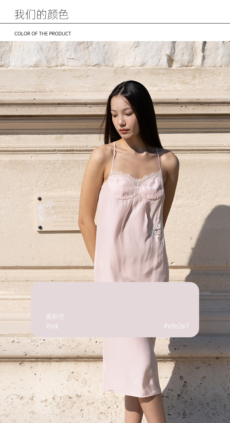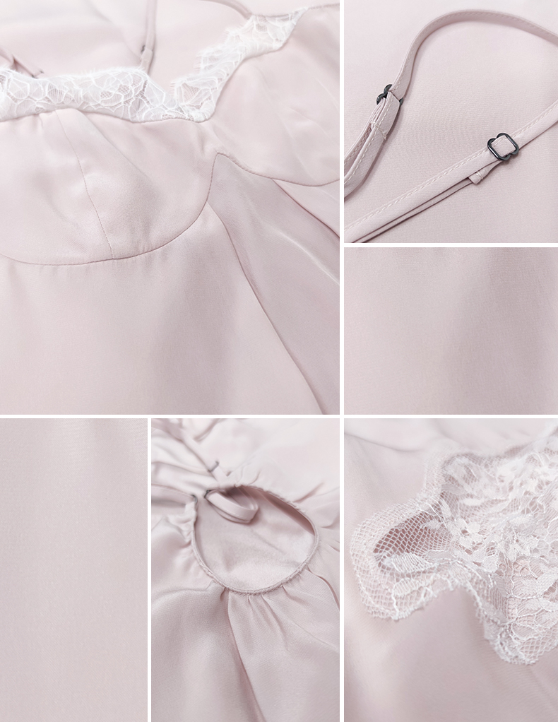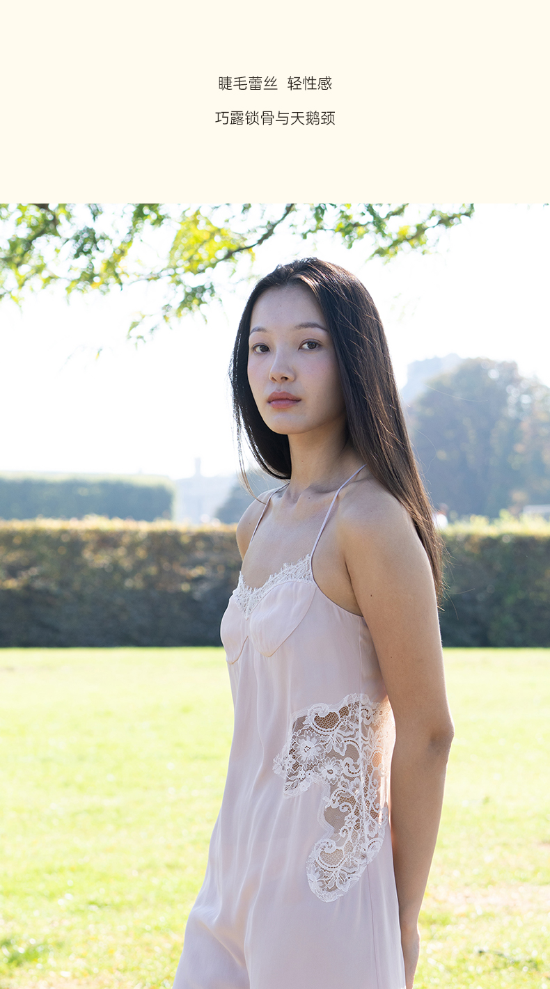 花语雾粉桑罗轻性感真丝吊带裙100%桑蚕丝女蕾丝家居服可外穿