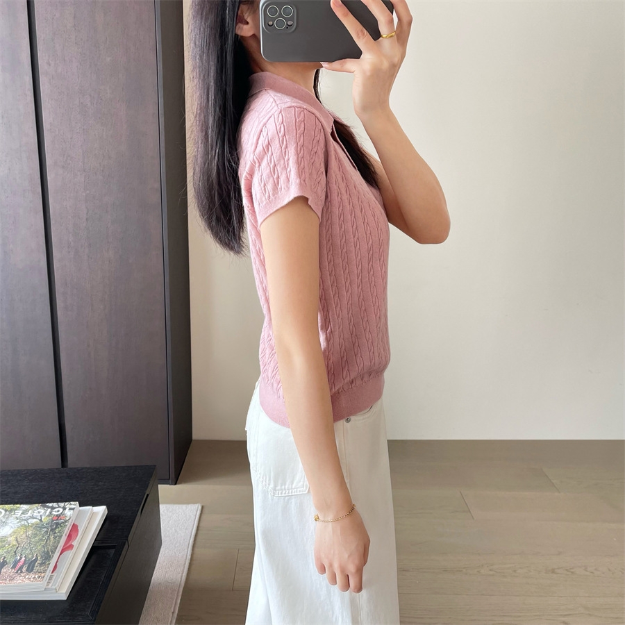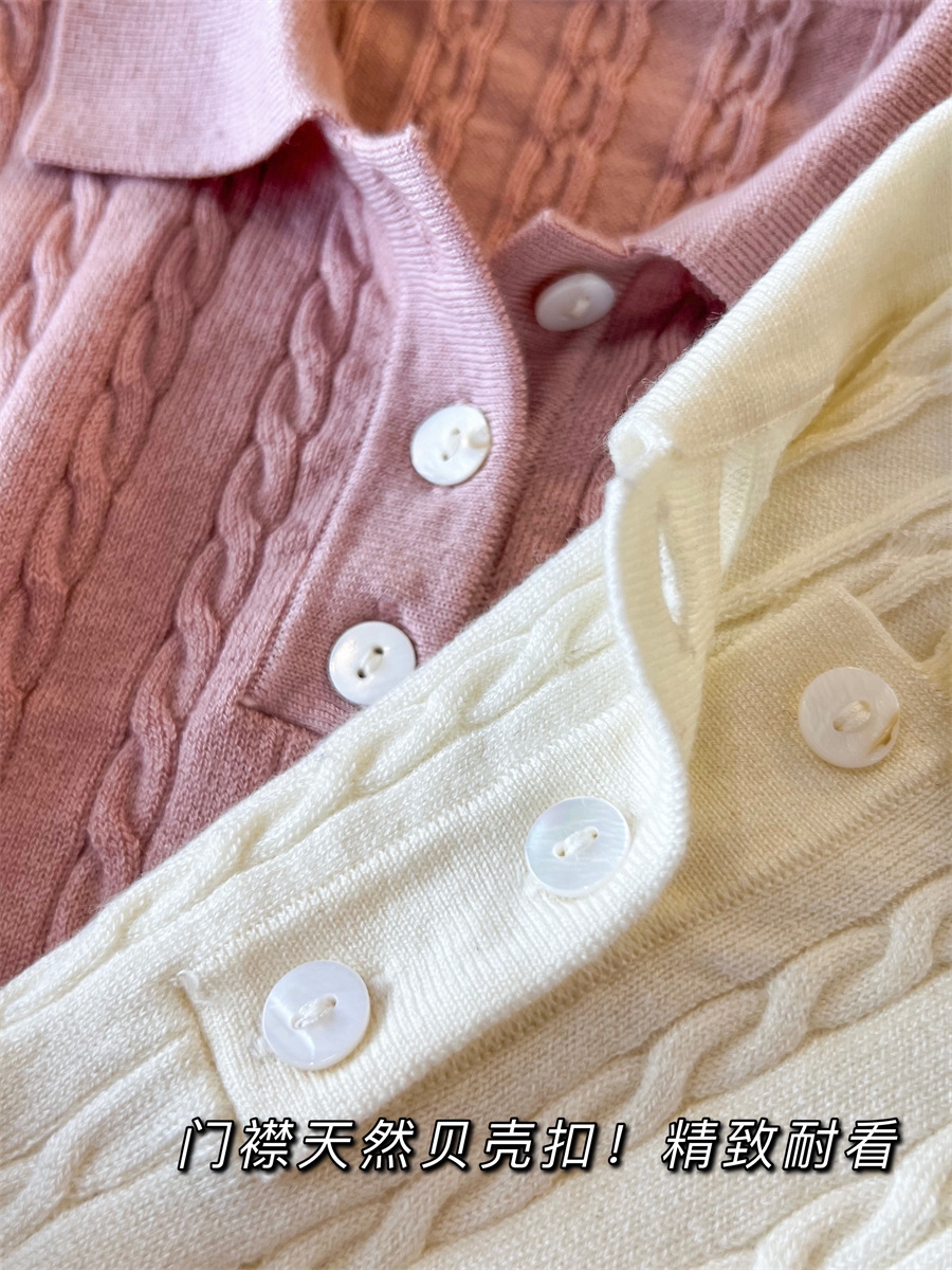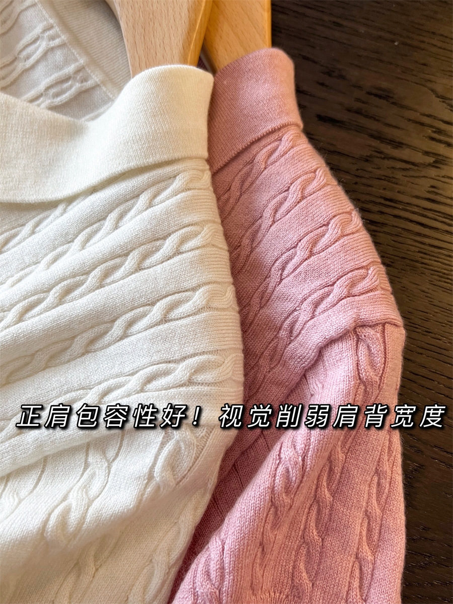 POLO衫与麻花的结合,将复古风进行到底!选用真丝羊毛混纺纱线,把肤感提升到极致,留了羊毛弹性好、吸湿性强、透气性好等特点同时又兼具真丝的光泽感,光洁雅致、轻盈滑爽的表面特征。