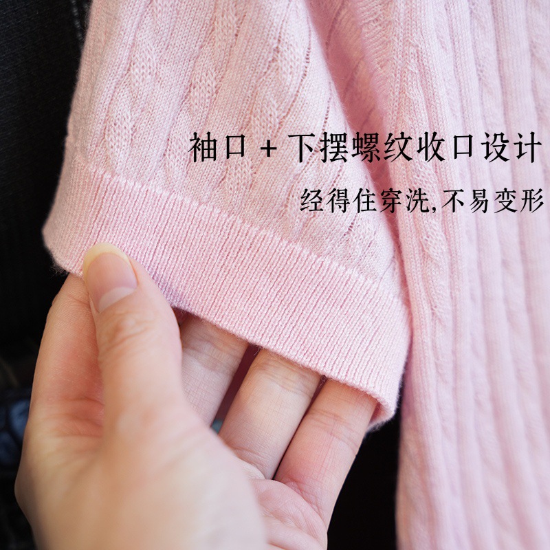 14针敲细绞花织法!!展现细腻精致的成衣效果,错落有致的纵向绞花,表面形成凹凸有致的肌理感。