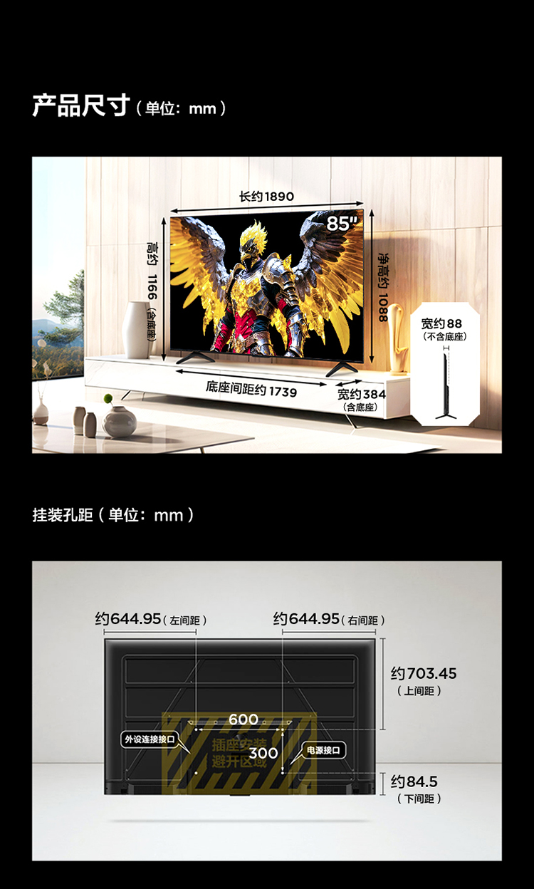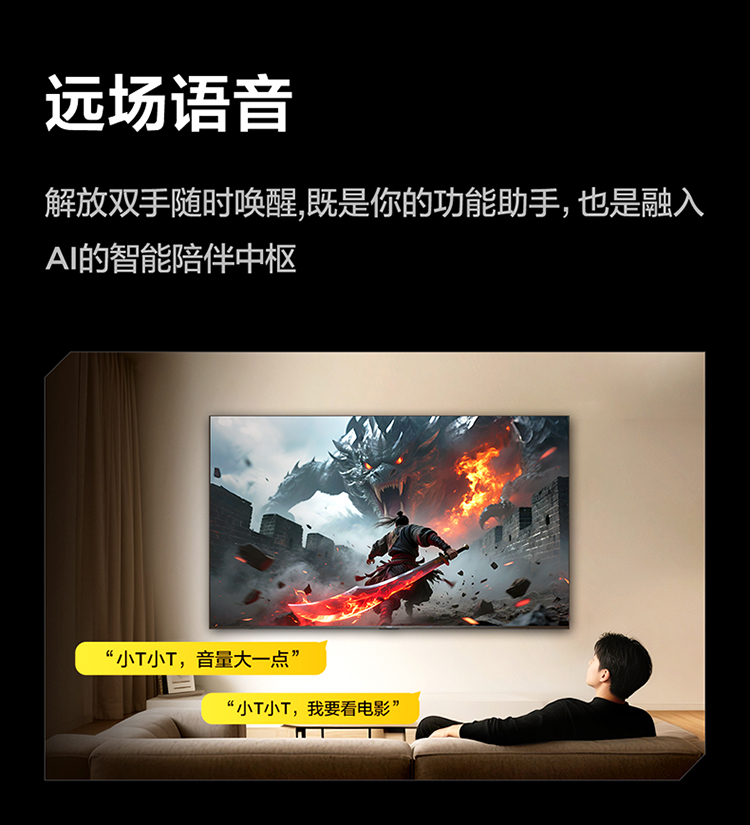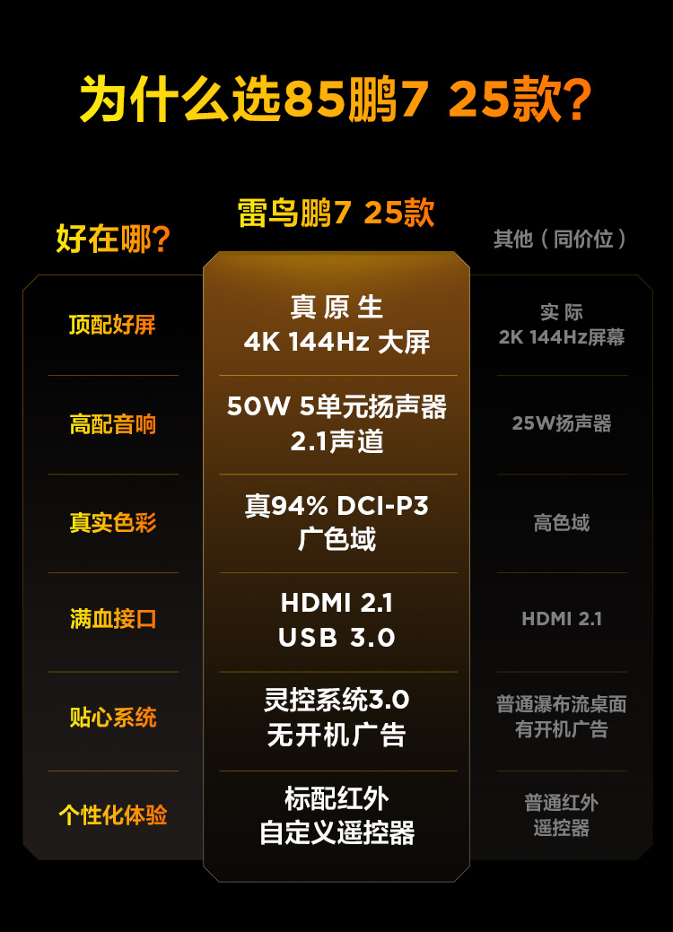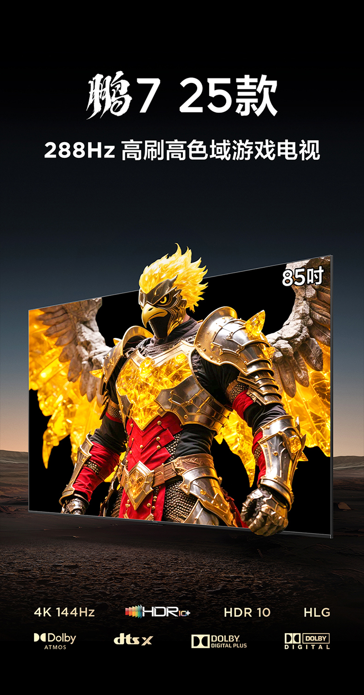 【FFALCON雷鸟】 85鹏7 25款 85英寸游戏电视 HDMI2.1 4K超高清 4+64GB电视机 85S385C Pro-J
