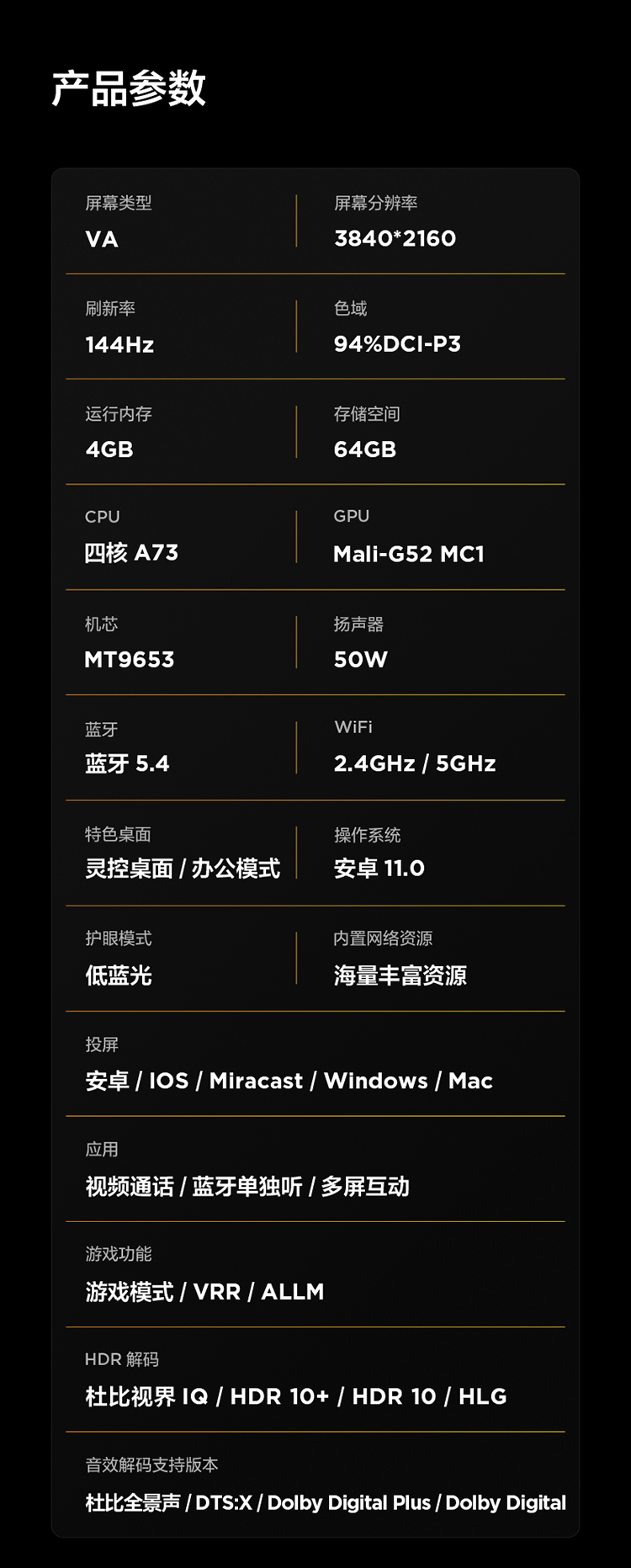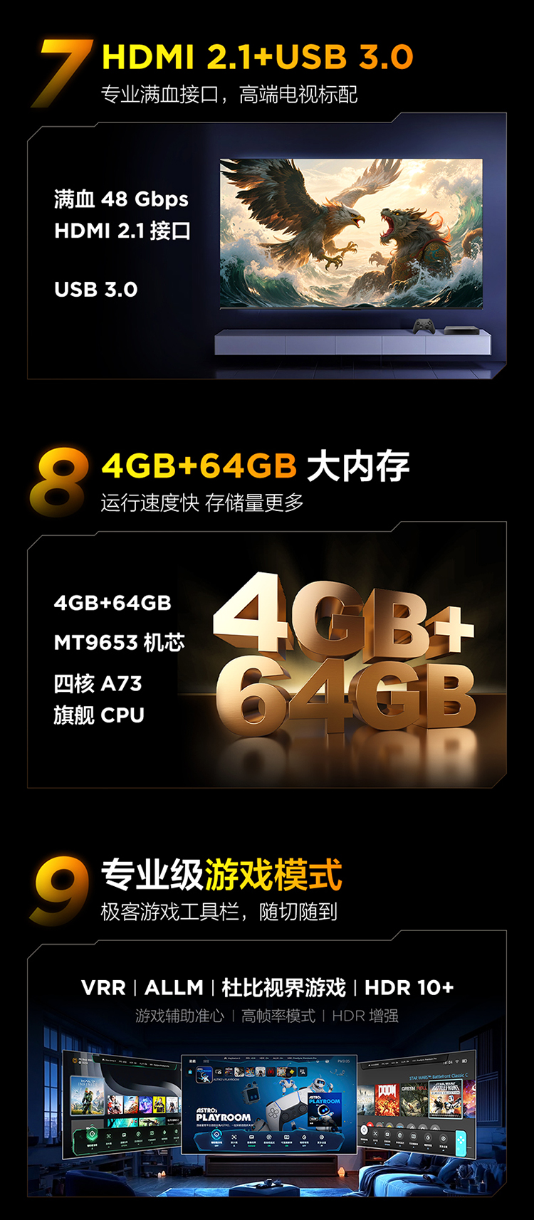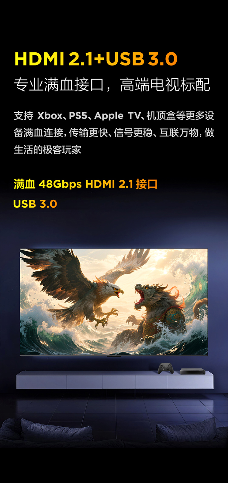 【FFALCON雷鸟】 85鹏7 25款 85英寸游戏电视 HDMI2.1 4K超高清 4+64GB电视机 85S385C Pro-J
