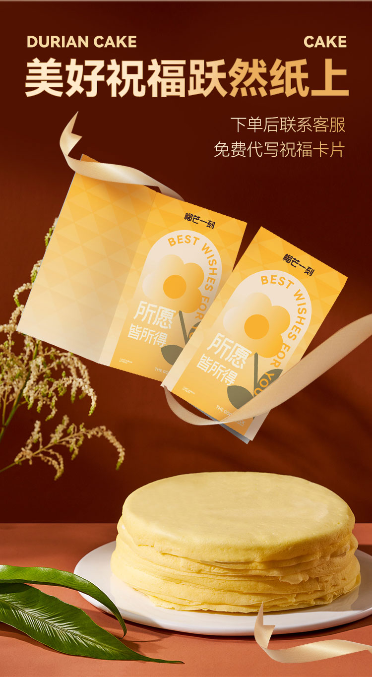【金枕榴莲千层】500克/盒|甄选榴莲果肉≥40%,动物奶油