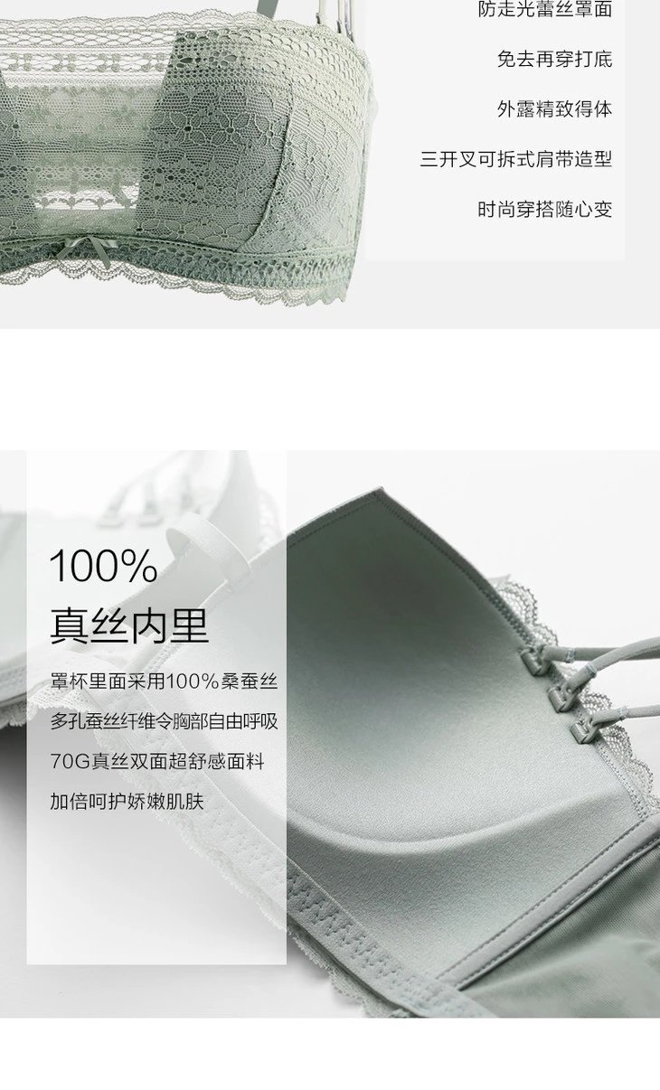 金三塔秋冬新品真丝无钢圈内衣女桑蚕丝性感抹胸式文胸NZFAA310