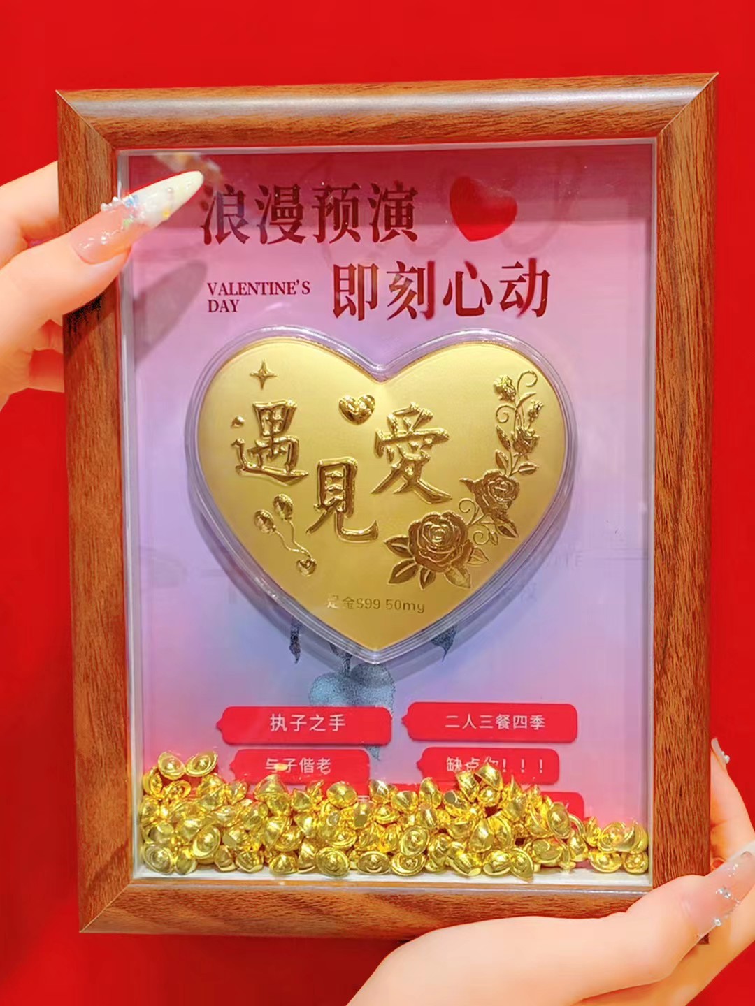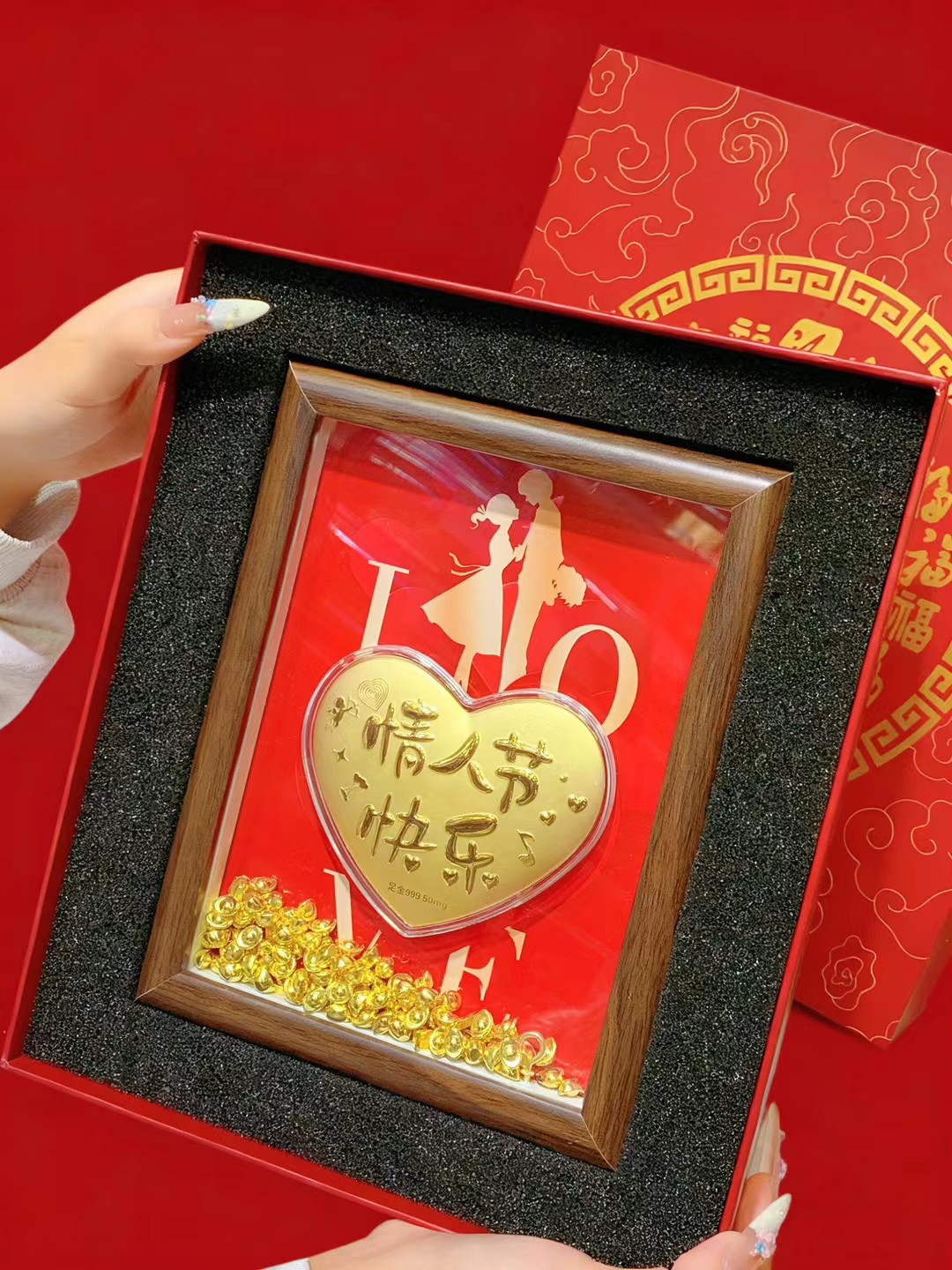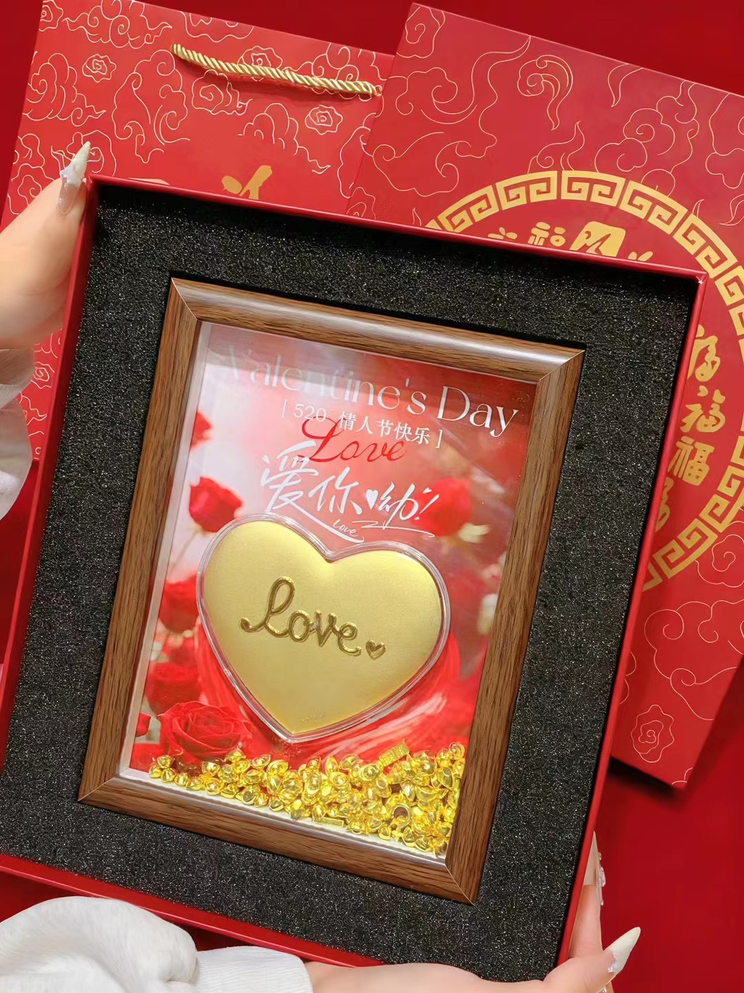 六鑫珠宝 情人节足金999黄金爱心玄关摆件 送女朋友礼物