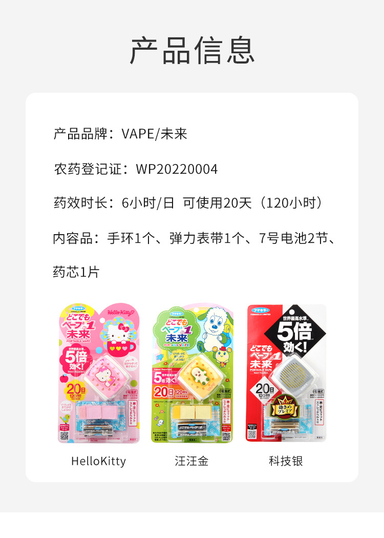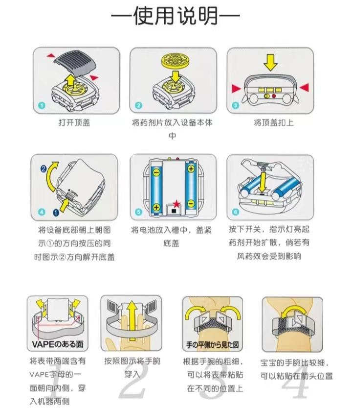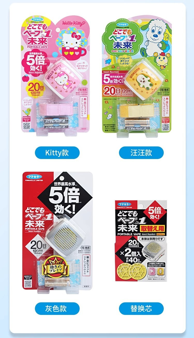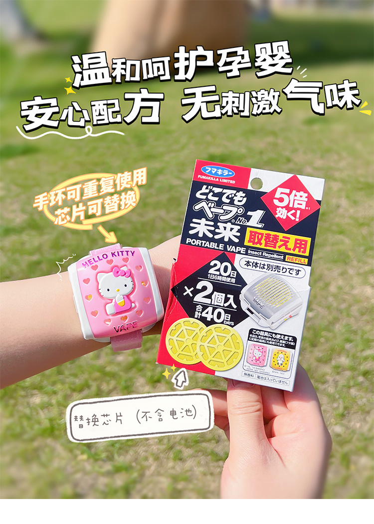 日本本土版未来VAPE驱蚊手表5倍强效驱蚊可用120日 (原装1套+1个替换芯)