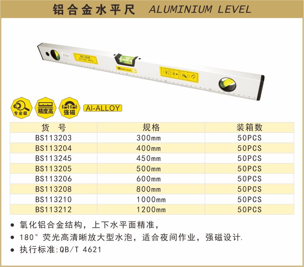 波斯铝合金水平尺(强磁)302B BS113203/BS113204/BS113245/BS113205/BS113206/BS113208/BS113210/BS113212