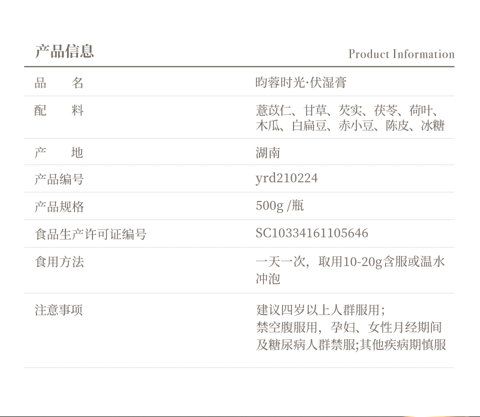 【昀蓉时光·伏湿膏】( 500g)紫铜锅明火熬制(包装升级·新老包装随机发货)