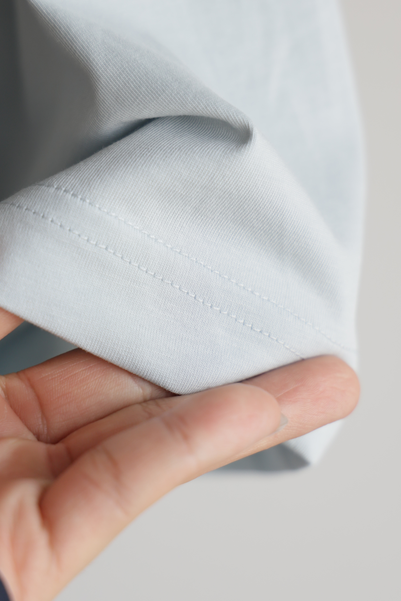 全棉水洗丝光,上身体感佳,面料轻薄不透,盛夏穿也不热