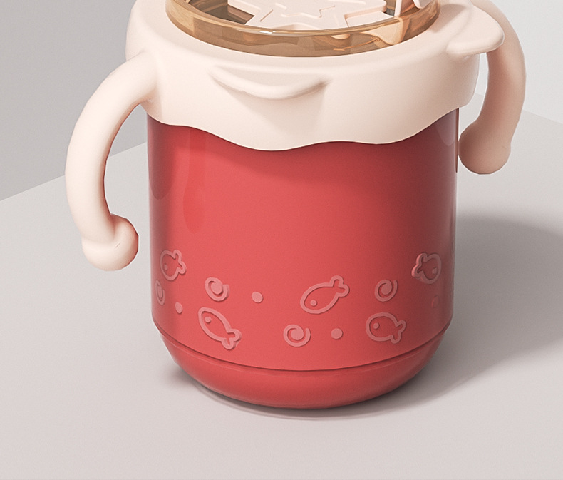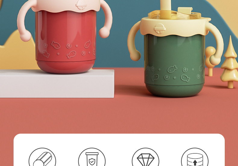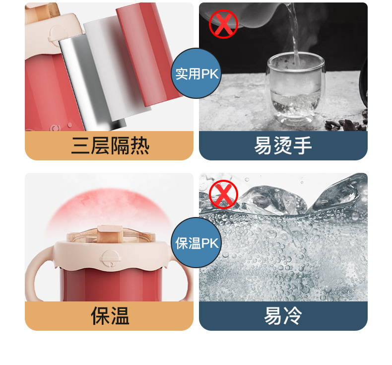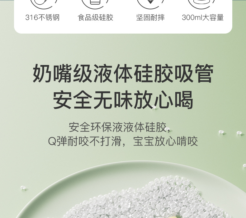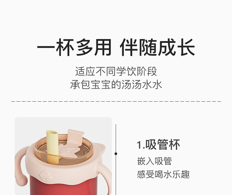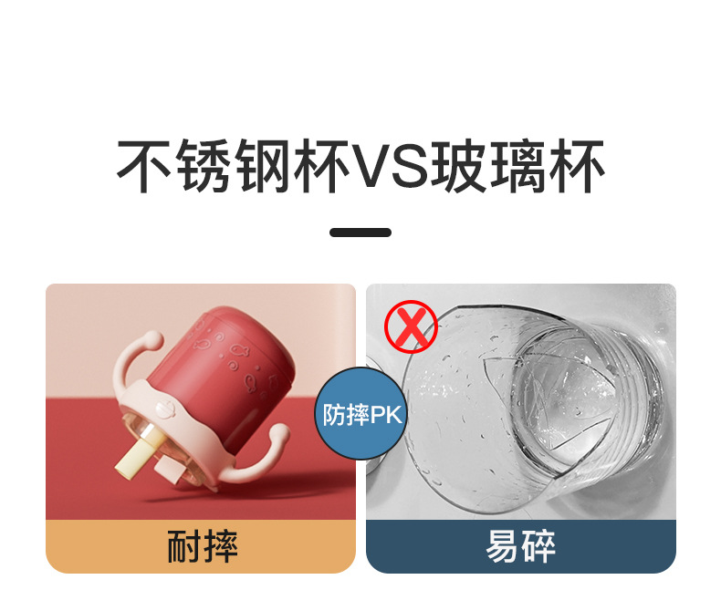 【宝宝用品】*带刻度防摔316不锈钢饮水杯宝宝冲奶吸管杯