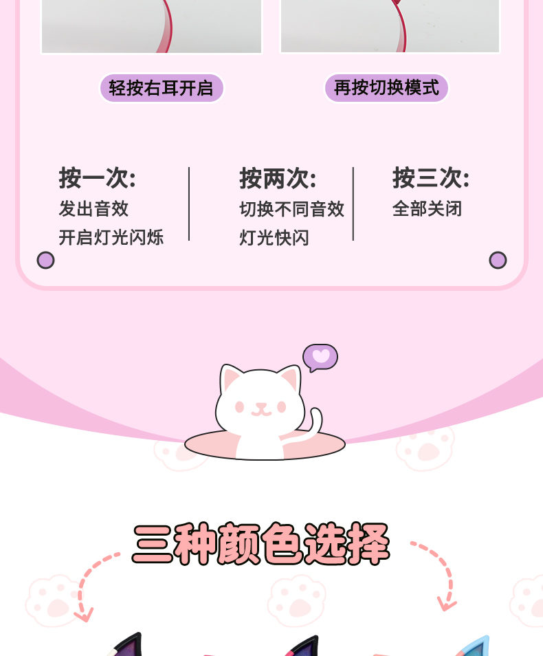 趣味玩具-可爱喵闪光发夹85037(自带灯光音效)