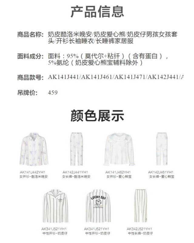 【春上新】8楼爱慕儿童Aimer Kids中性奶皮仔家居长裤AK342J521,吊牌价459元 商品图1