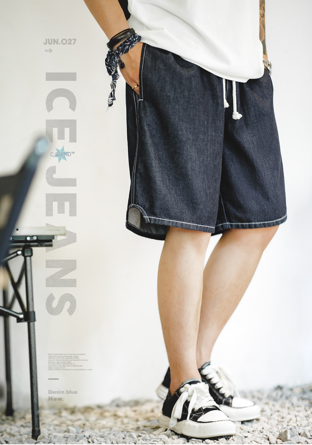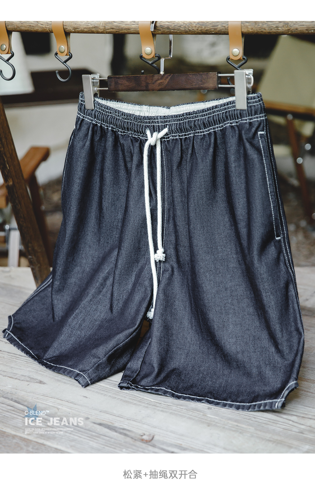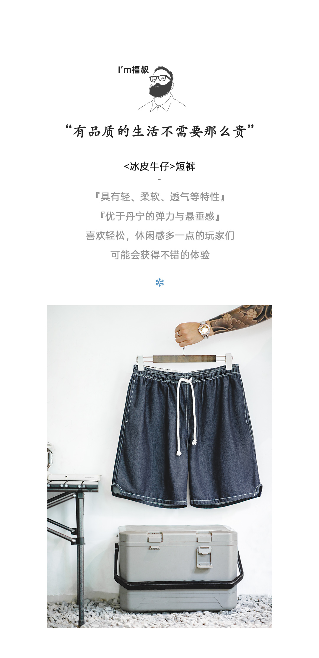 马登工装 美式休闲冰皮牛仔短裤丹宁凉感五分裤宽松直筒半裤男夏