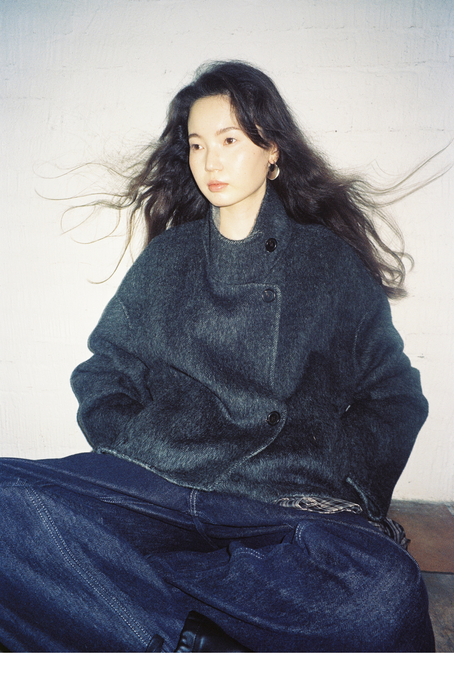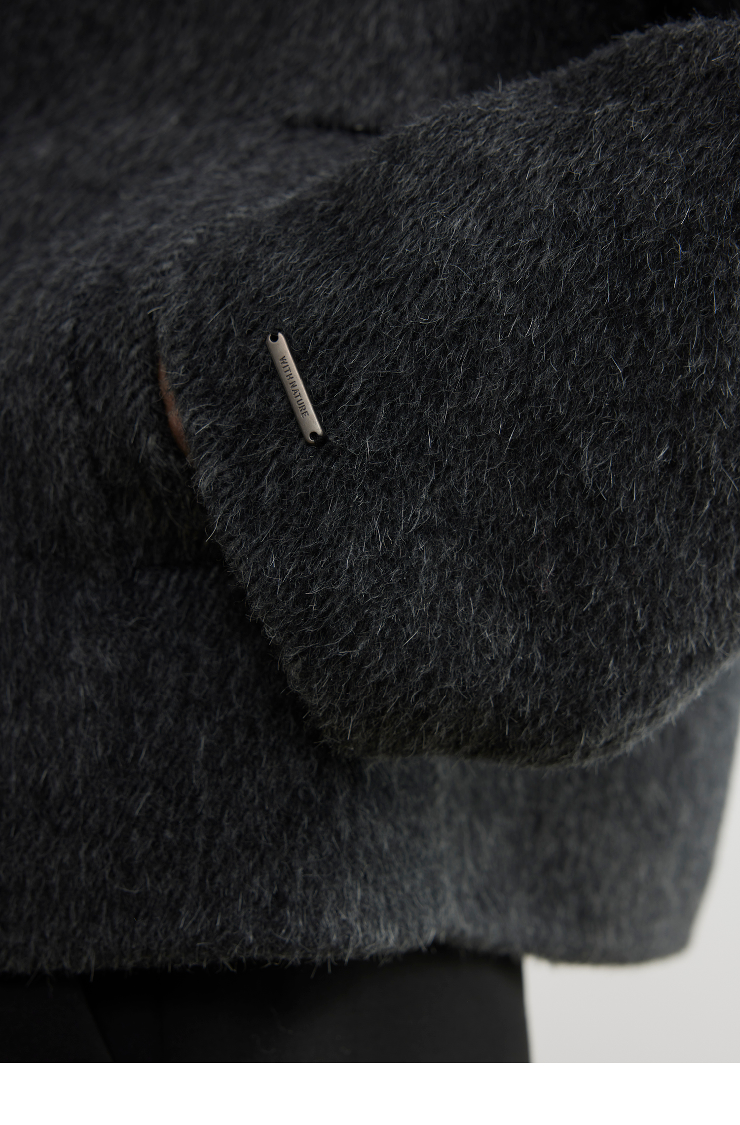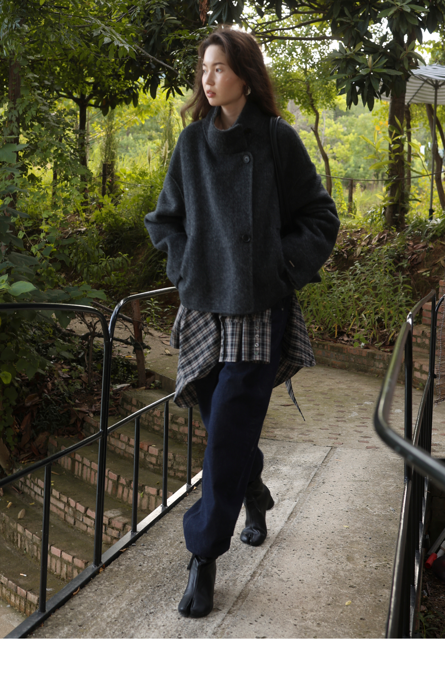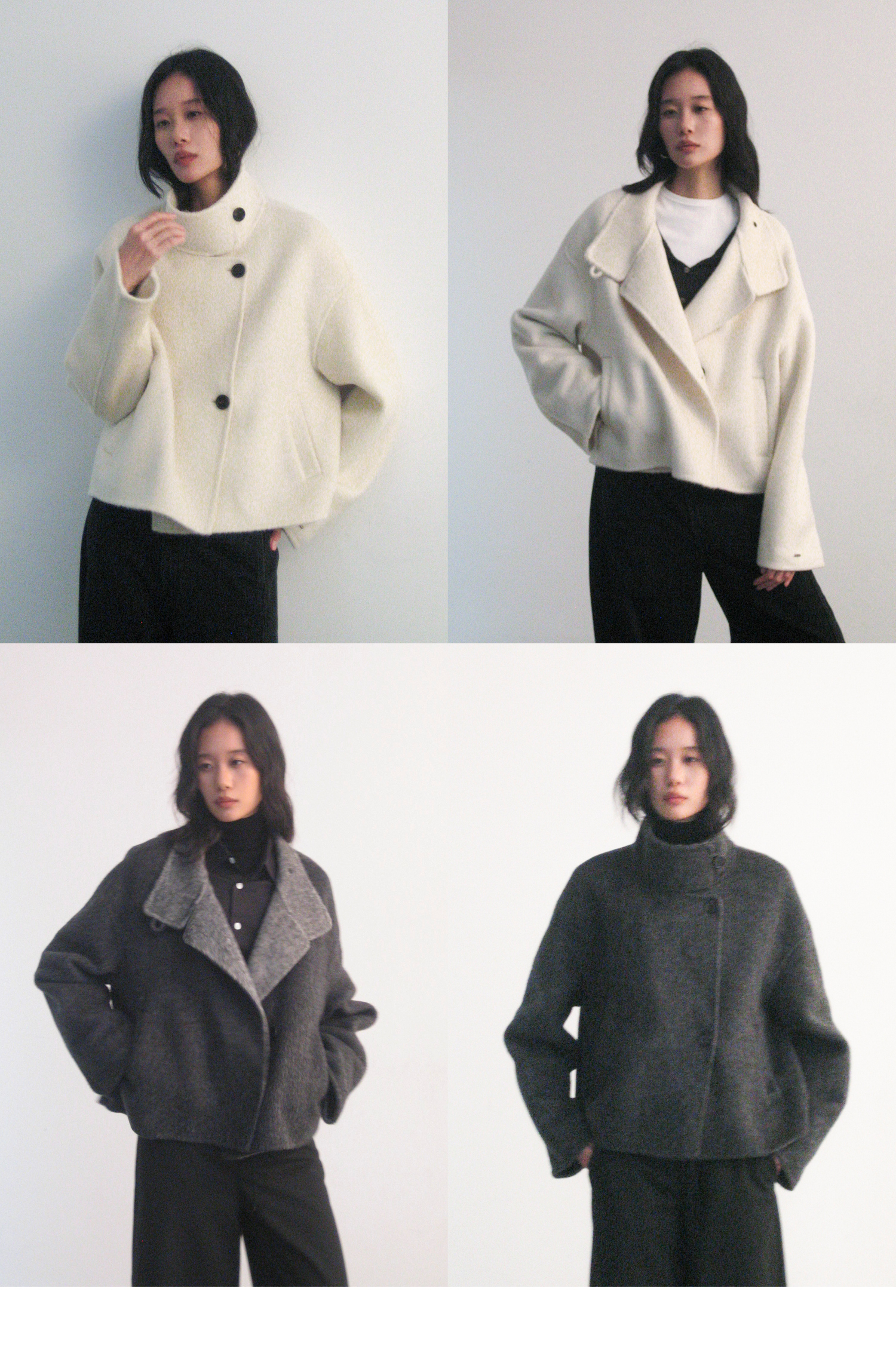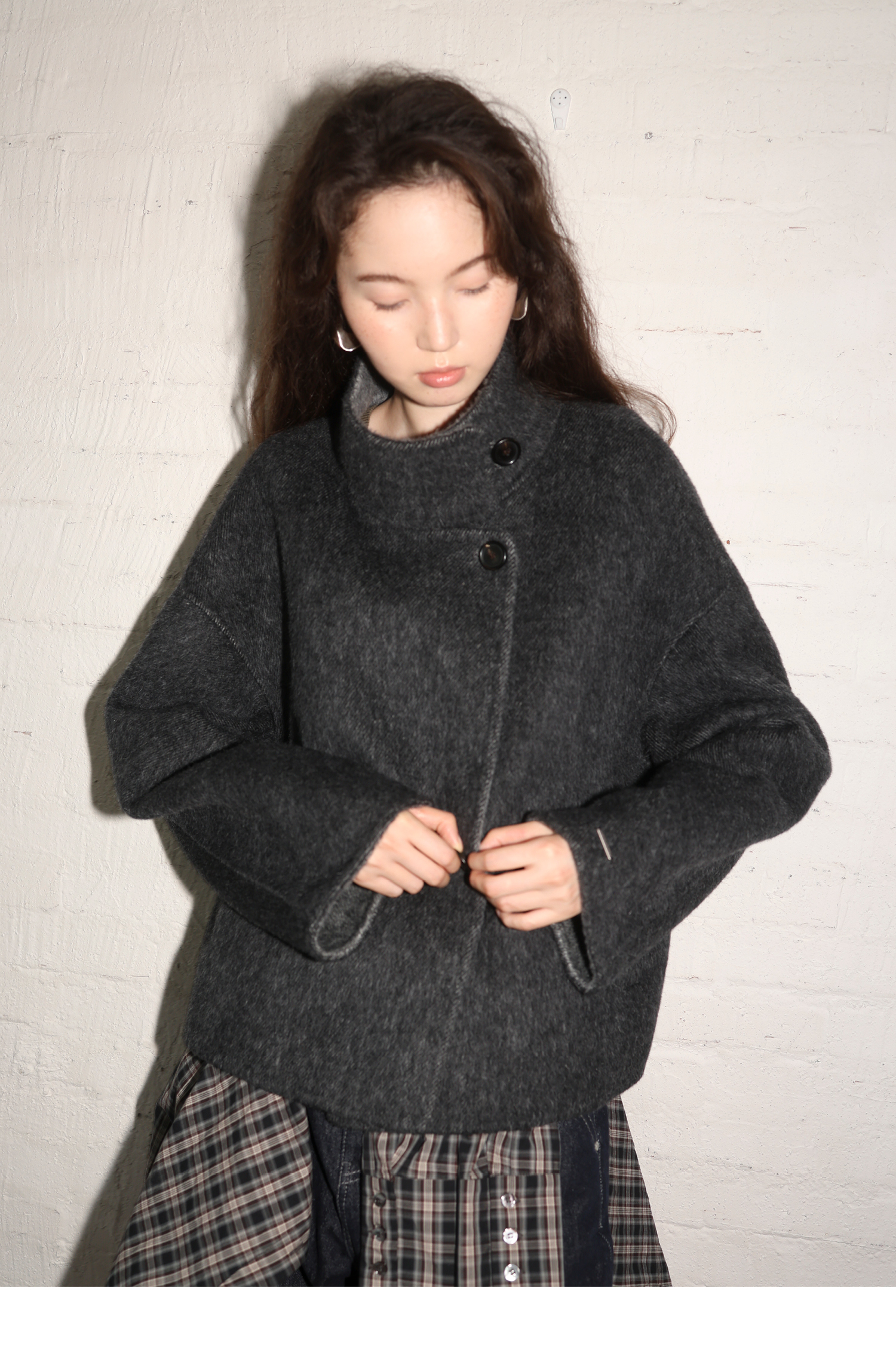 素舶 真丝兔绒羊毛混纺柔顺丝滑短款立领气质双面毛呢大衣短外套
