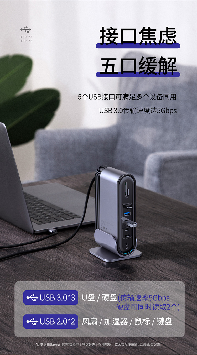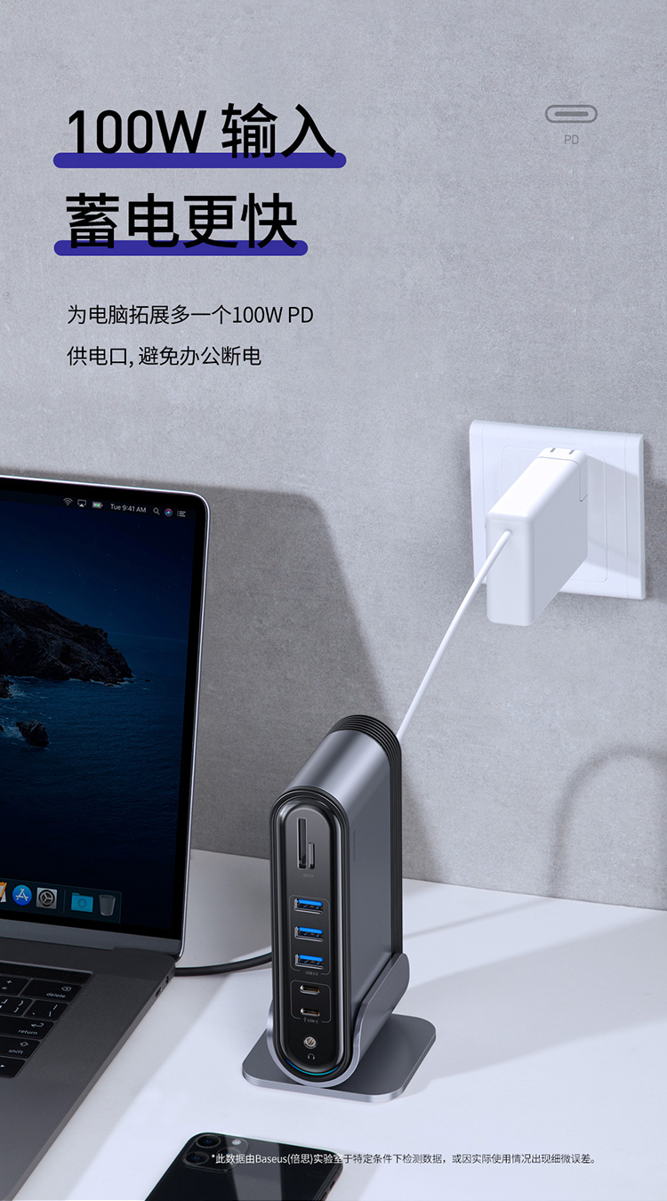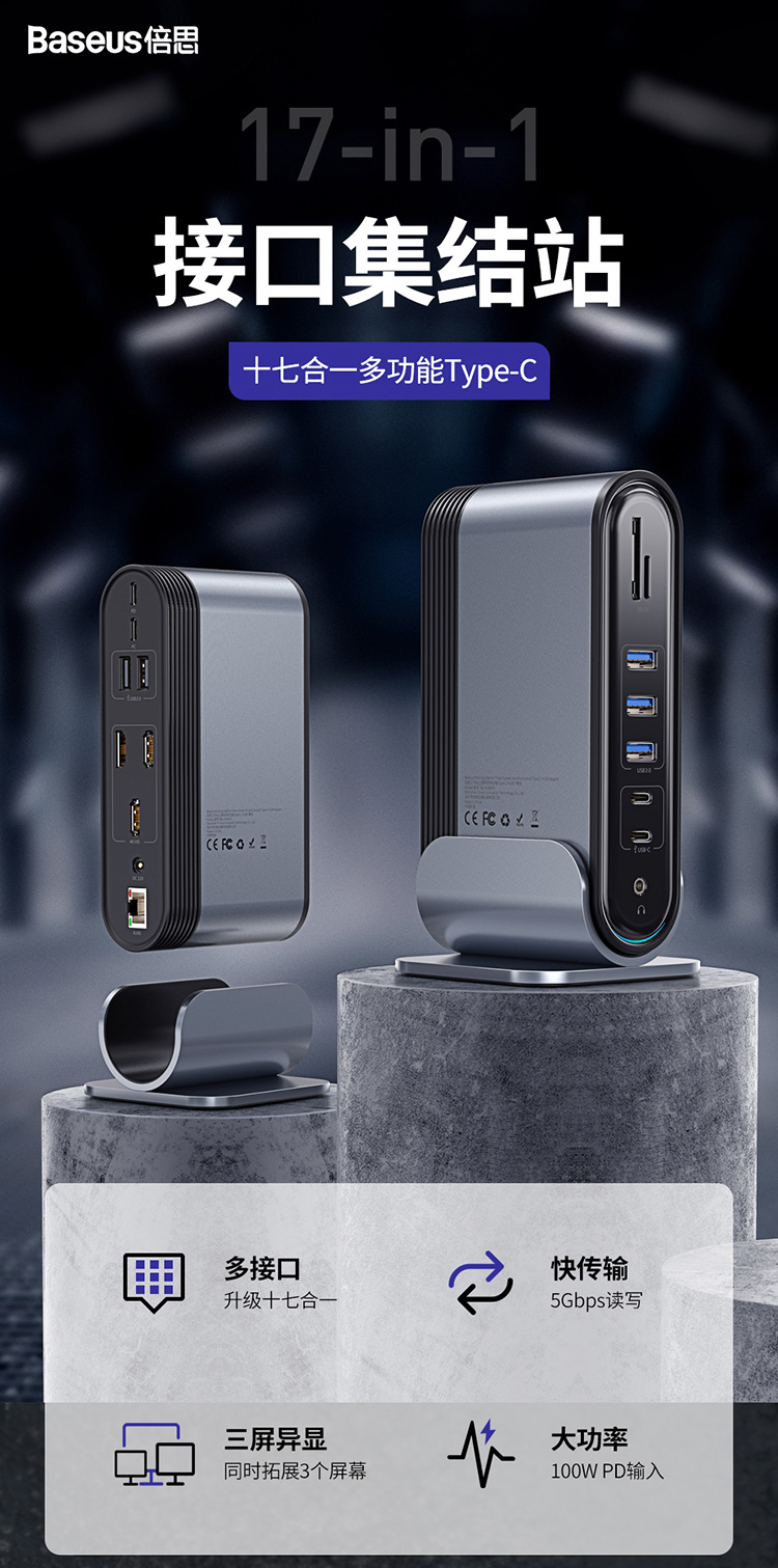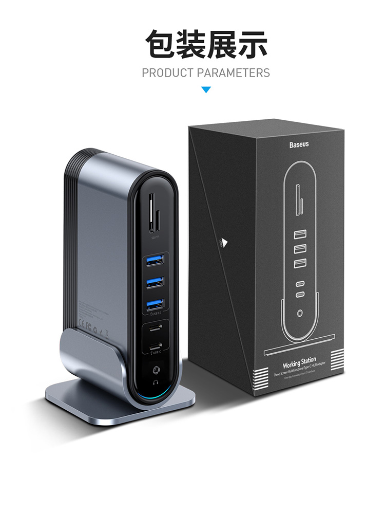 倍思 工作站 三屏异显多功能Type-C HUB扩展坞(中规+欧规+英规