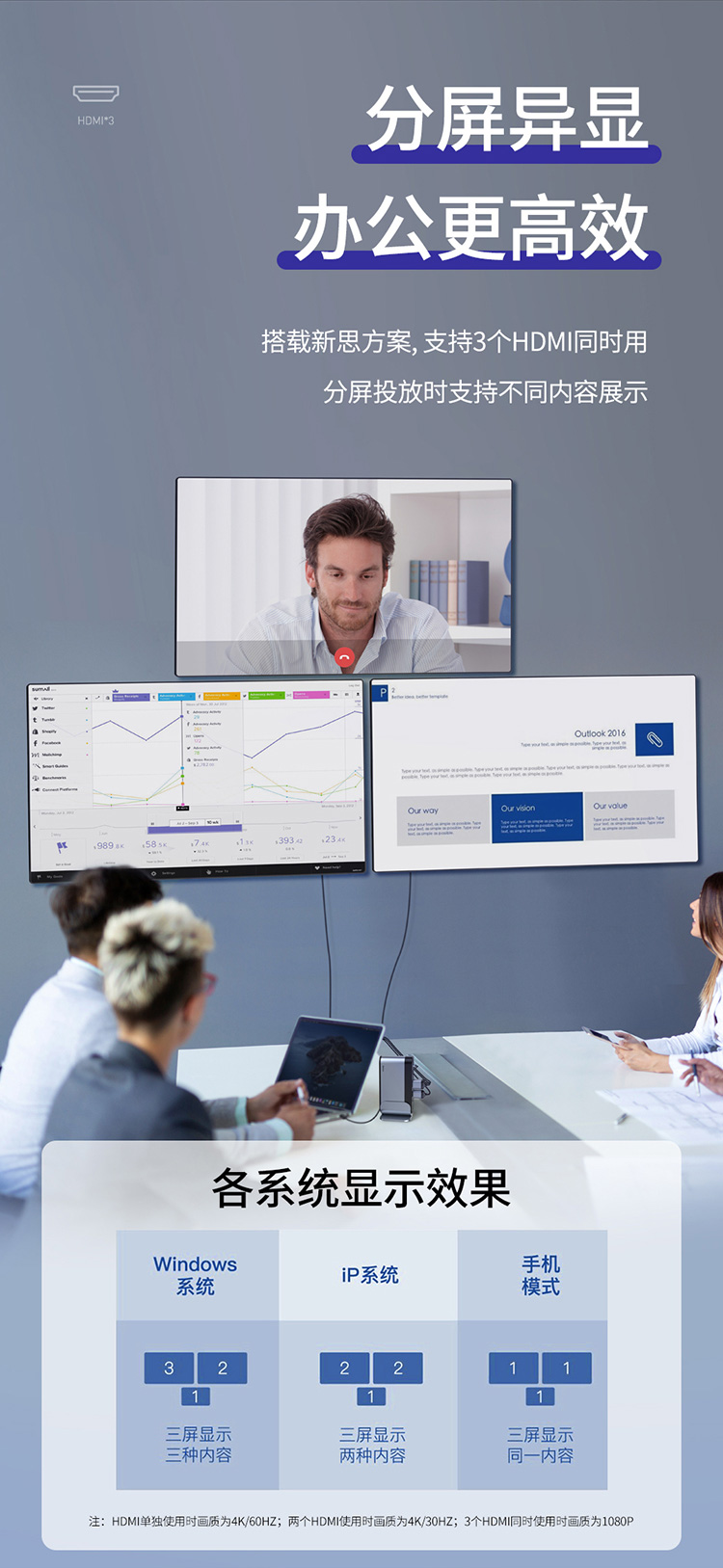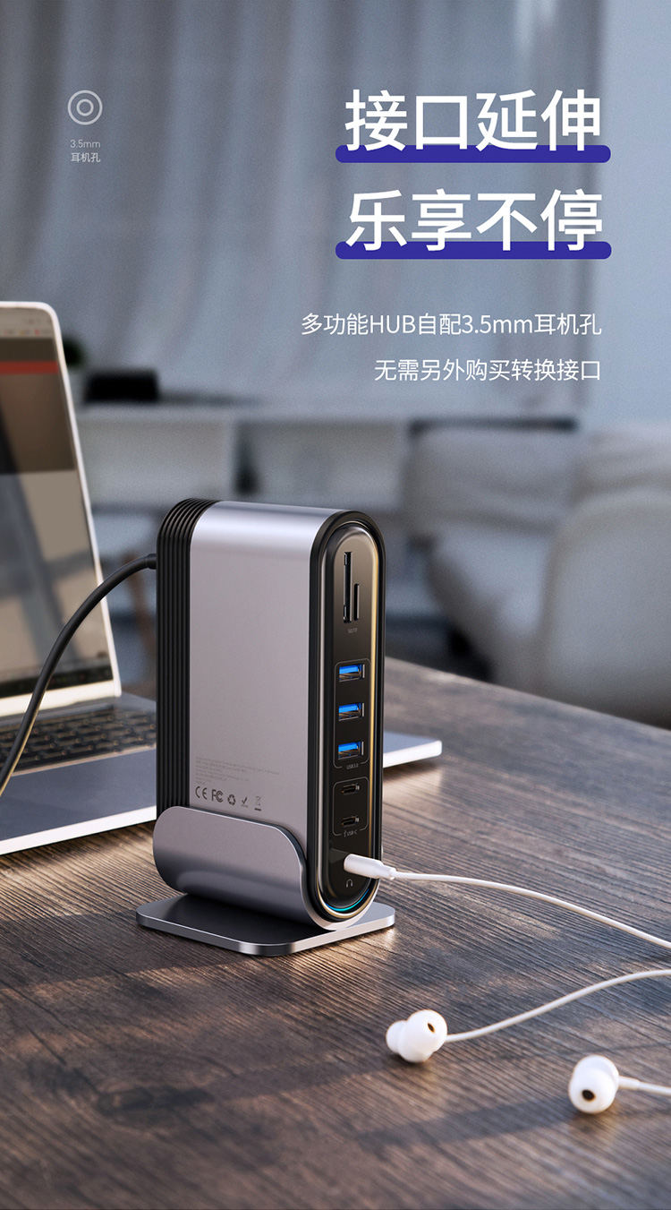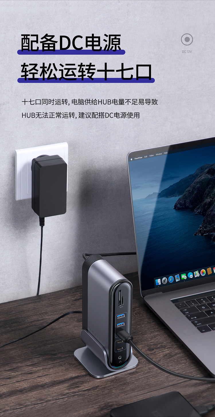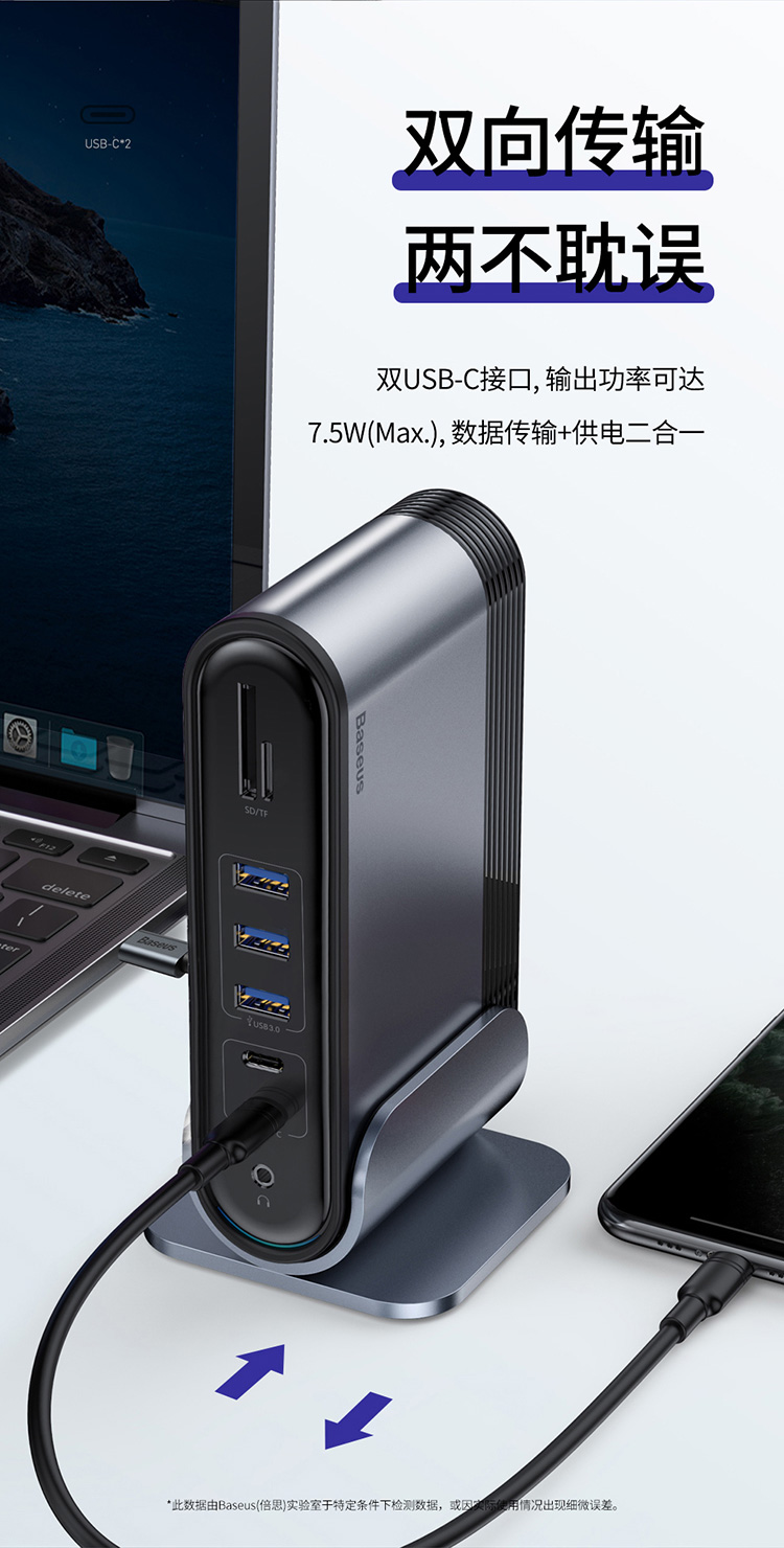 倍思 工作站 三屏异显多功能Type-C HUB扩展坞(中规+欧规+英规