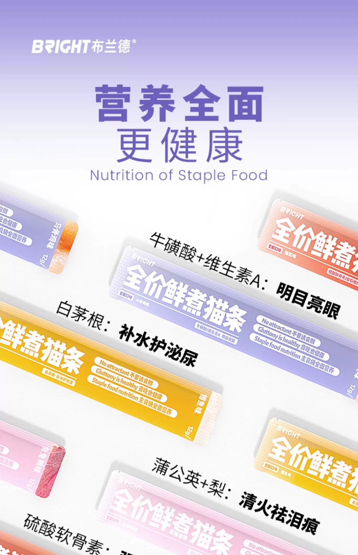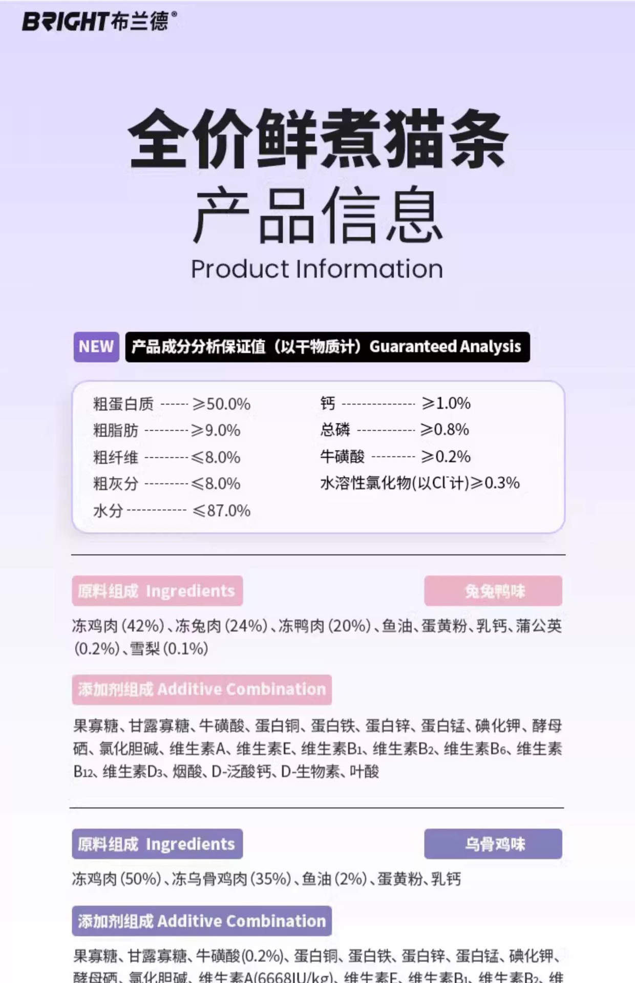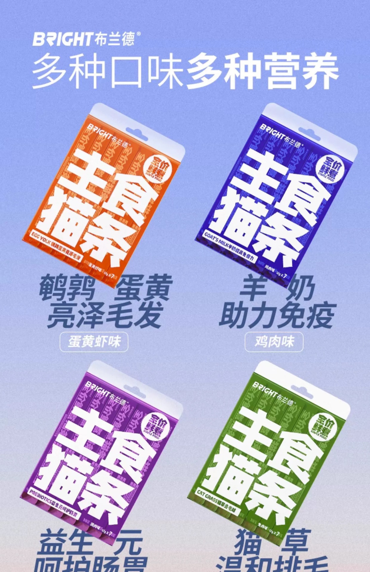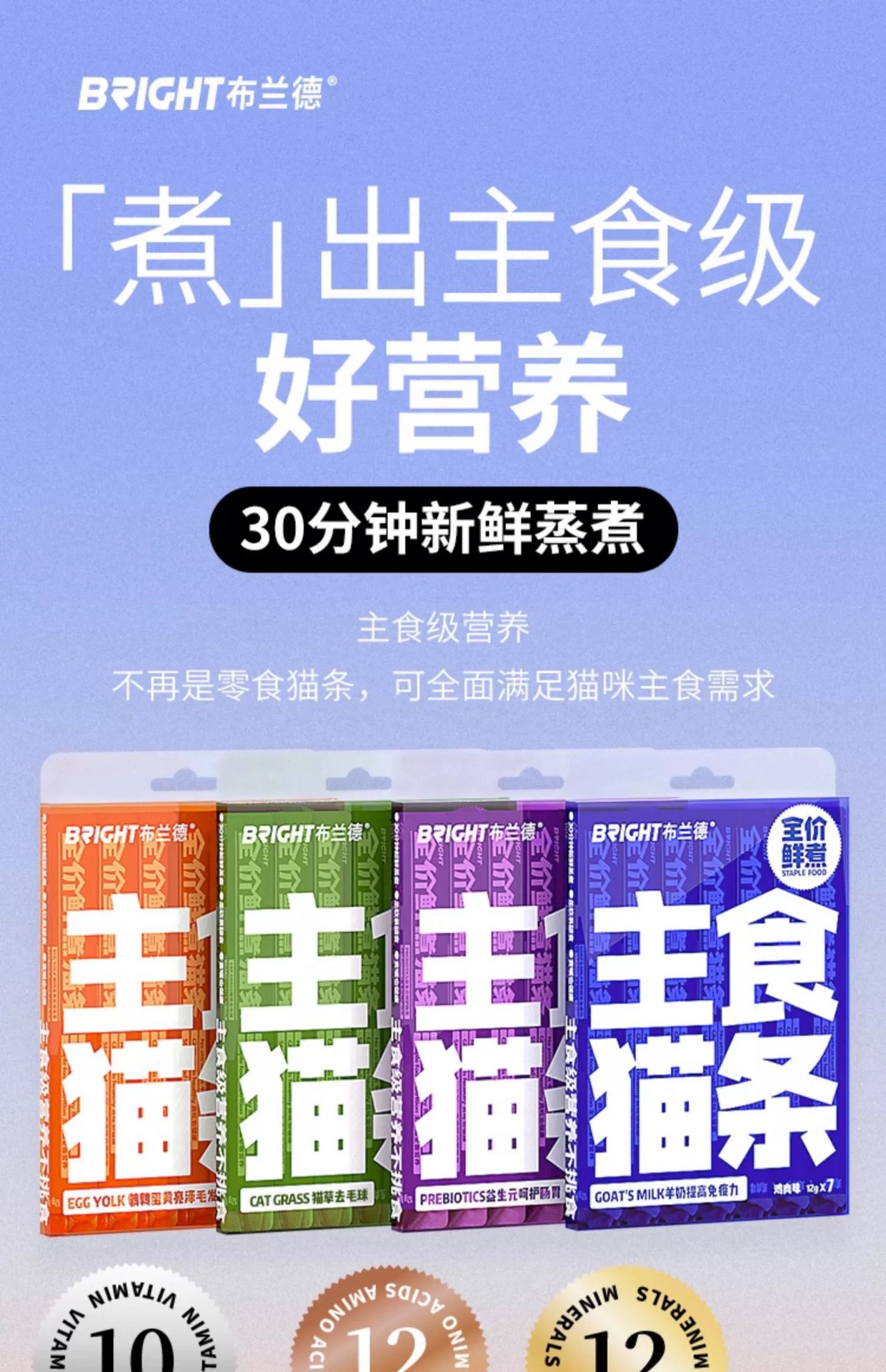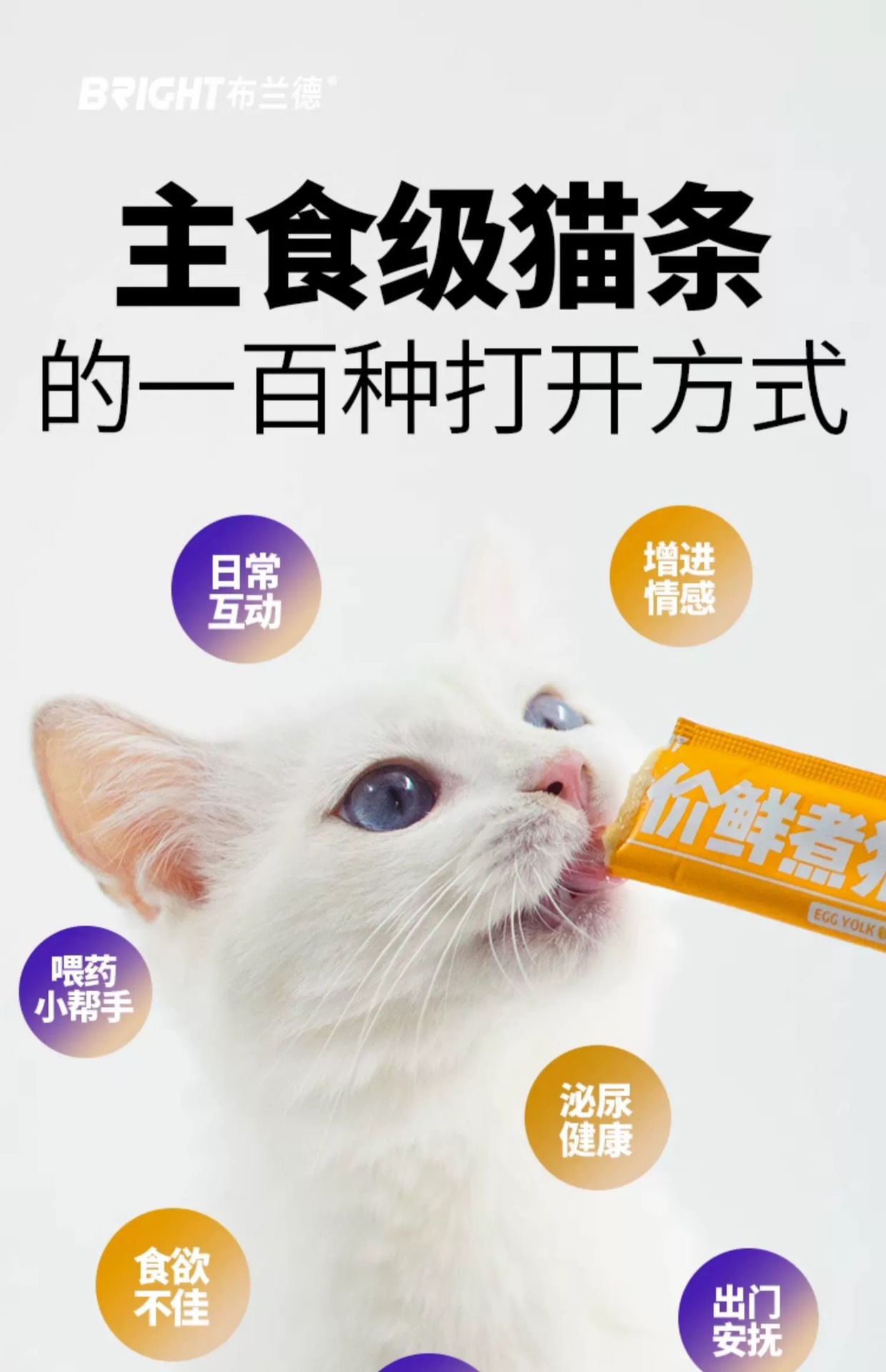 布兰德【优质蛋白主食猫条鳕鱼味】全价鲜煮功能餐包成猫幼猫通用猫咪零食12g*7/盒