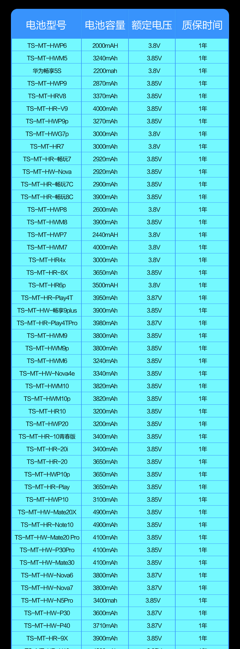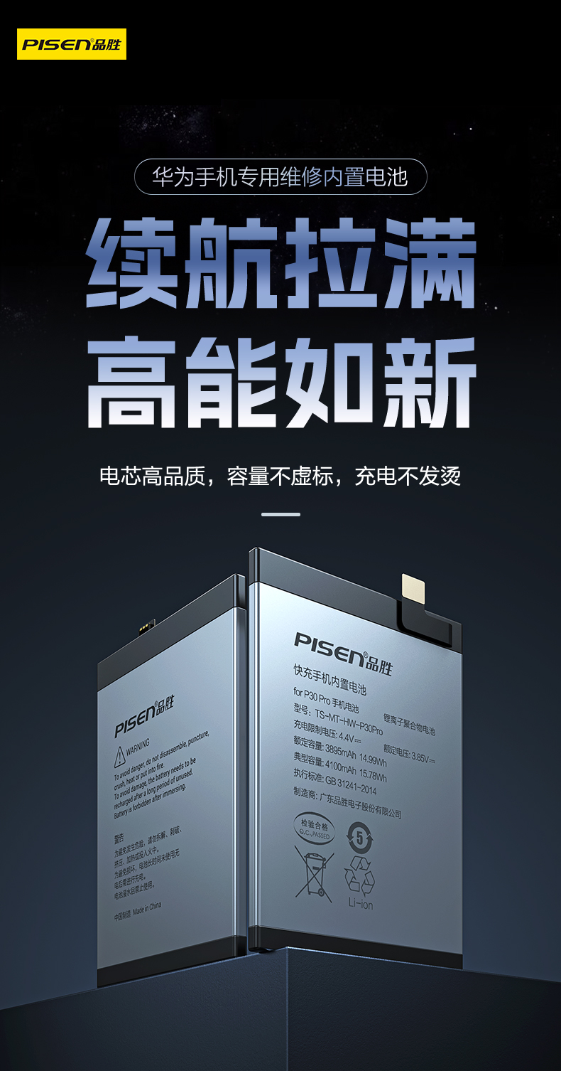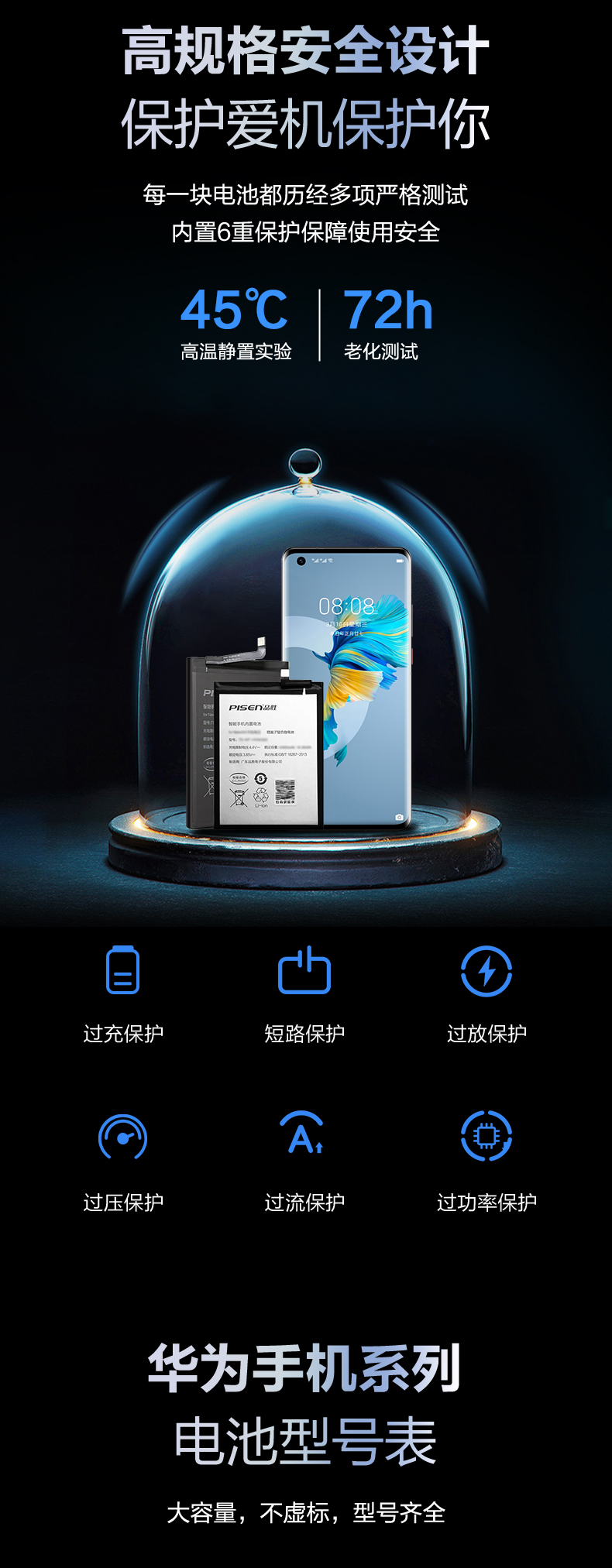 中国品胜 华为手机内置电池 适用于华为 Mate8/9 P8/9/10/9plus/G9 P30Pro荣耀7/V8 Nova Mate20/20X等电池维修【免费安装 一年质保】