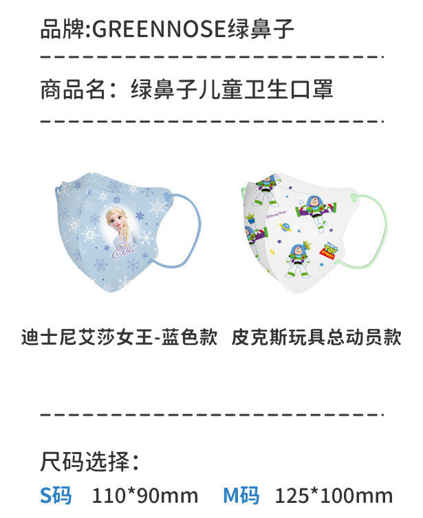[屁侠推荐]绿鼻子greennose 迪士尼限量款 立体儿童口罩 0-6岁 宝宝婴儿 艾莎/巴斯光年款