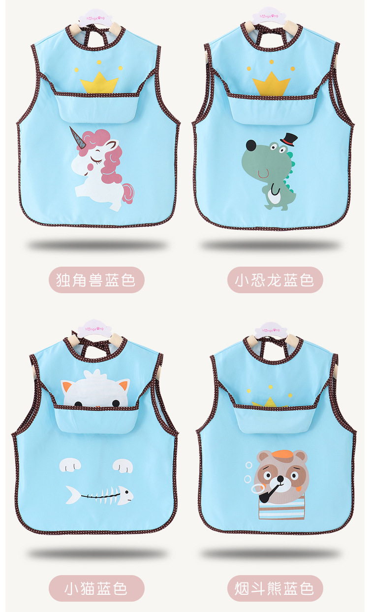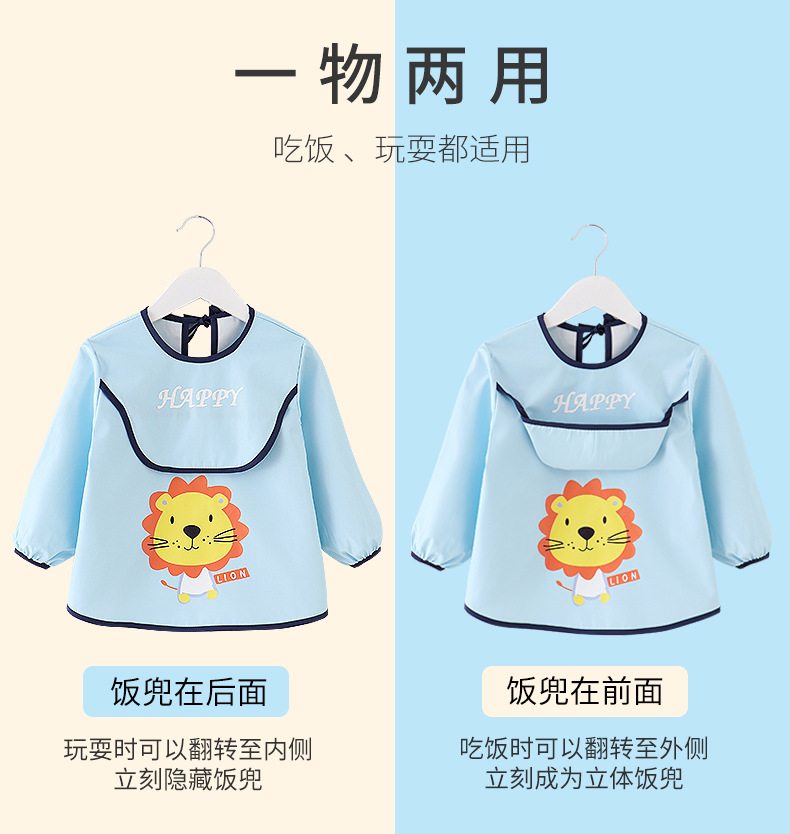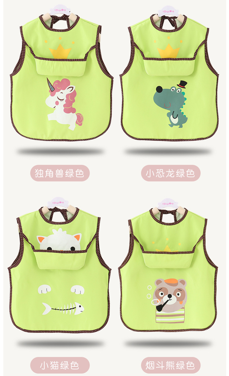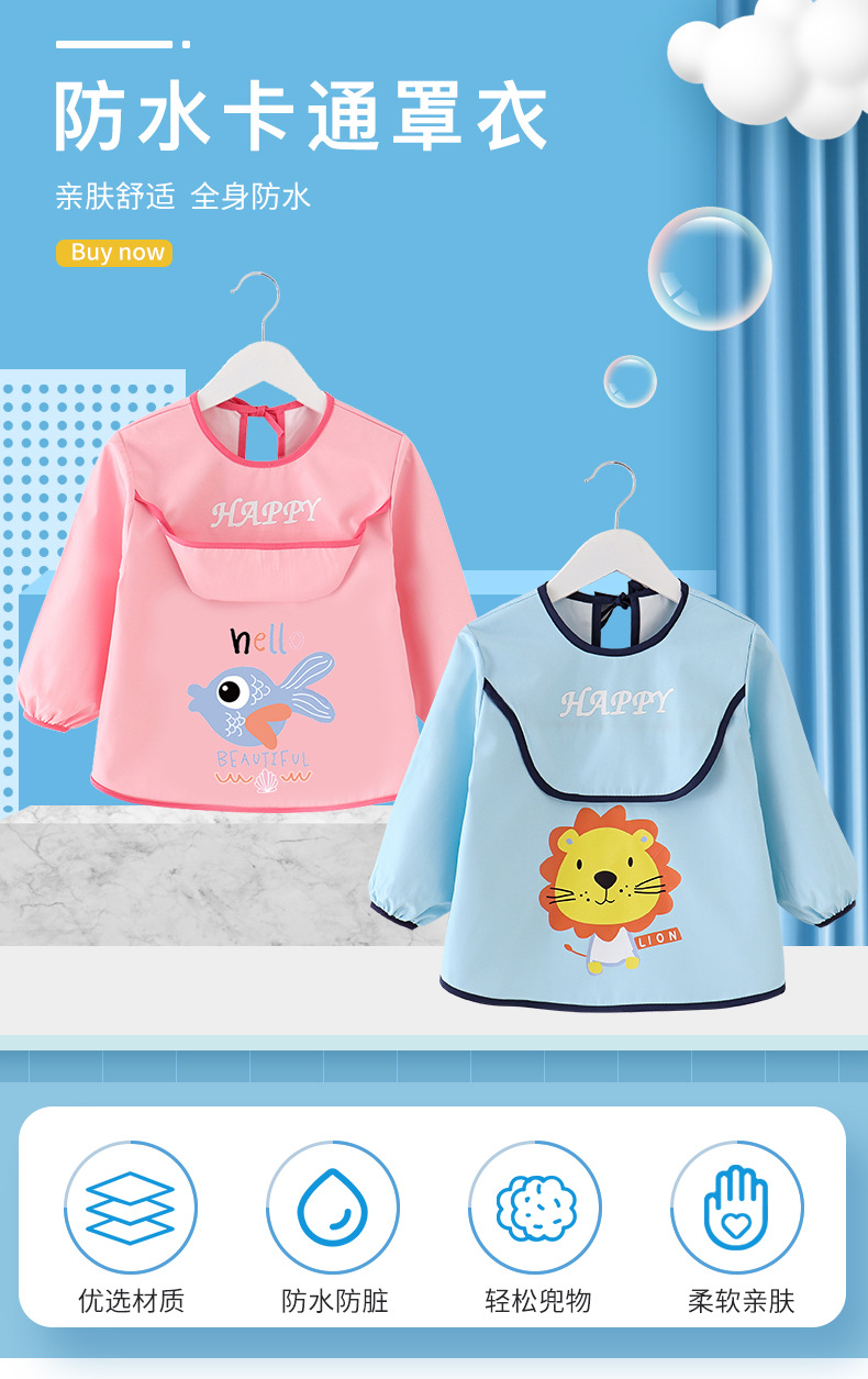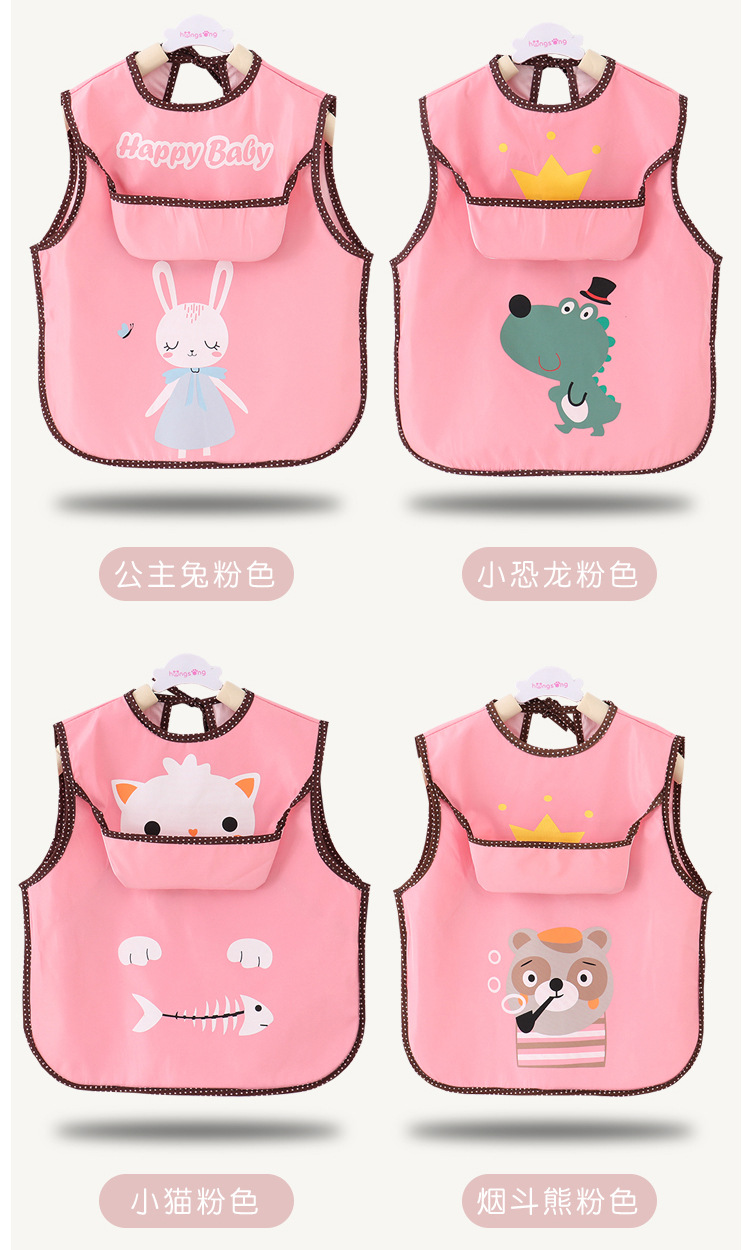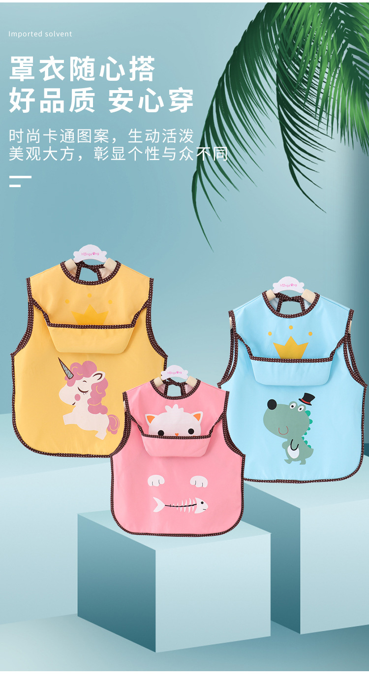 【做轻松妈妈 做干净宝宝】儿童罩衣夏季防水婴幼儿围裙围兜无袖反穿衣宝宝吃饭画画衣带饭兜