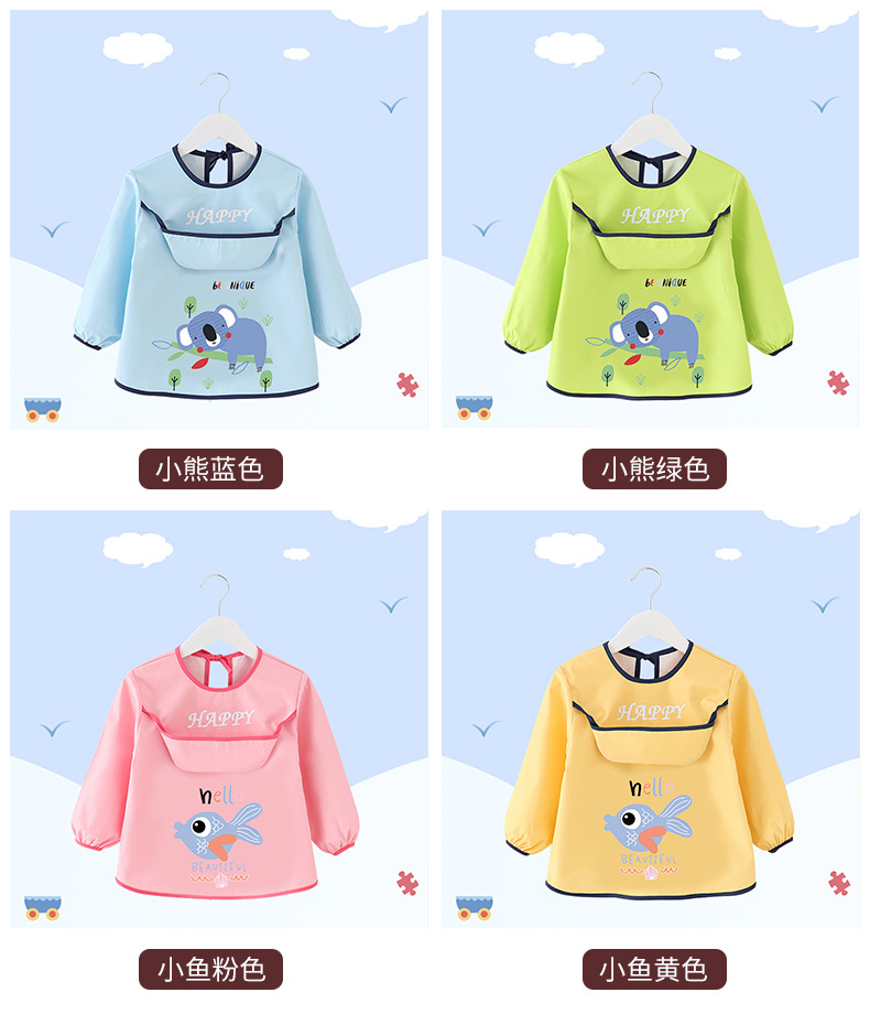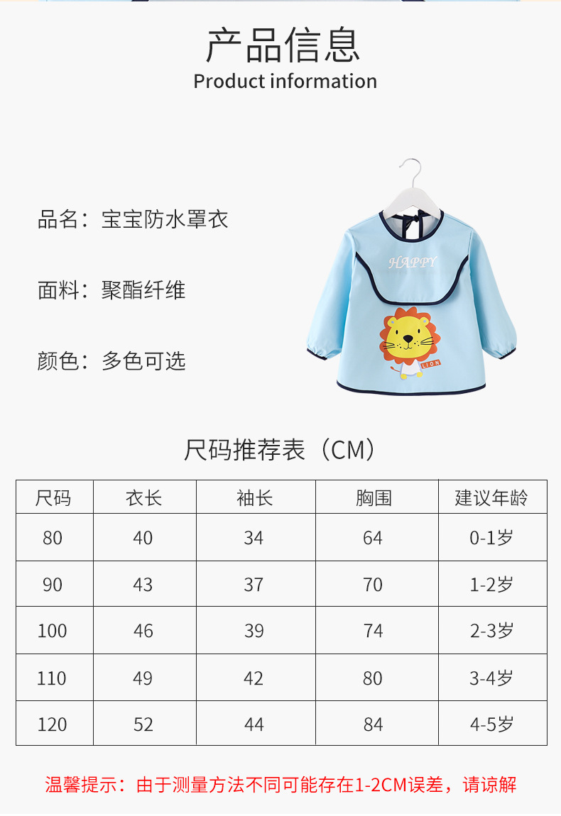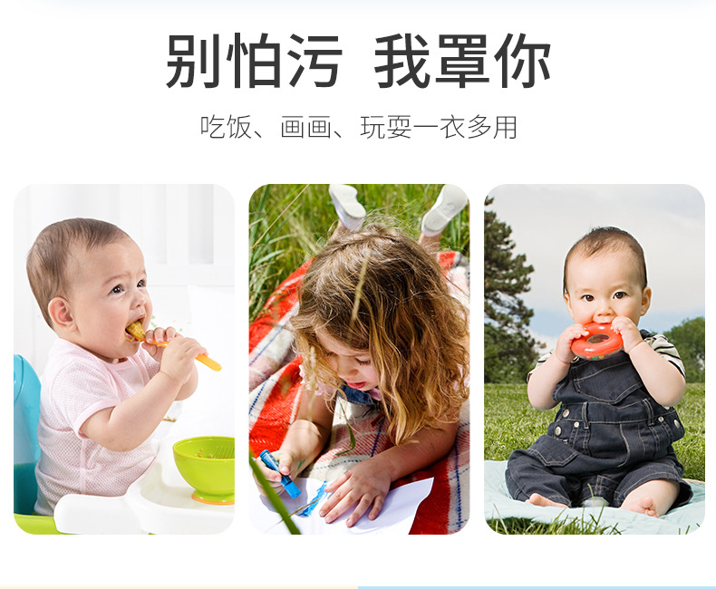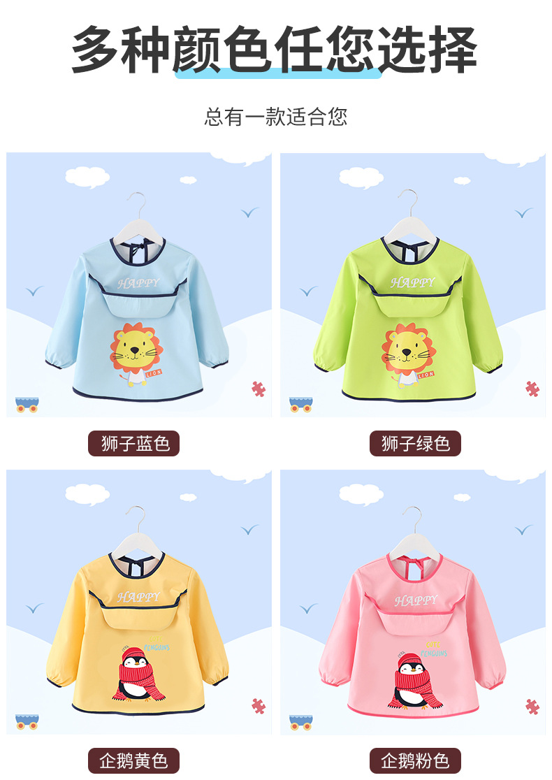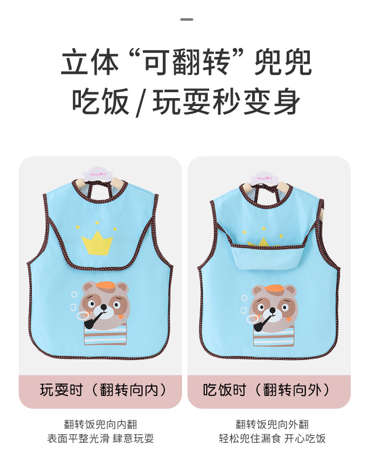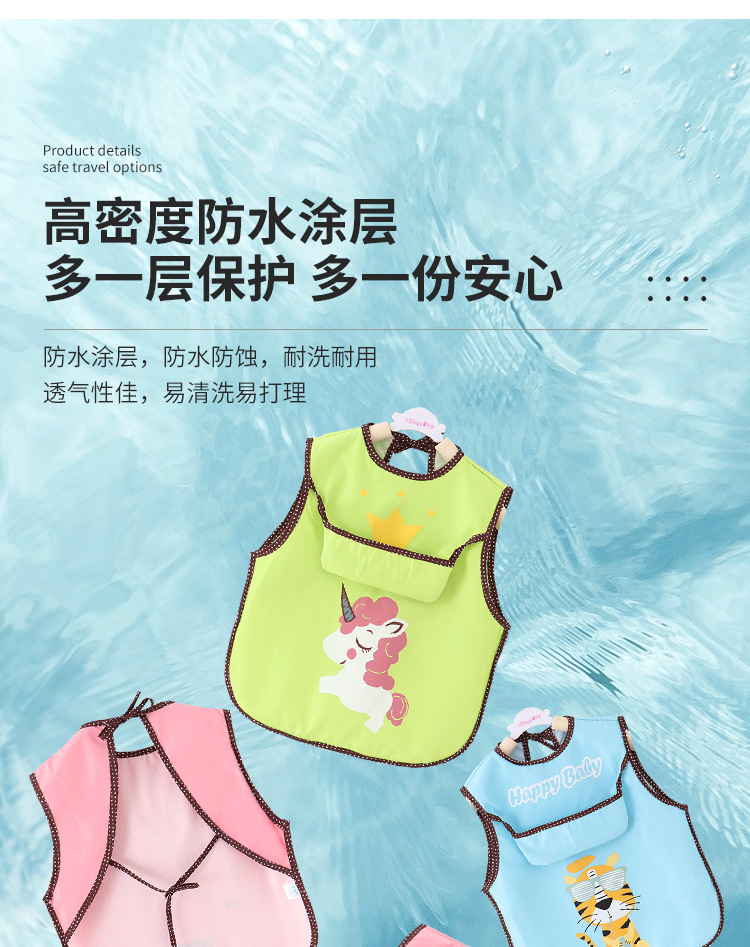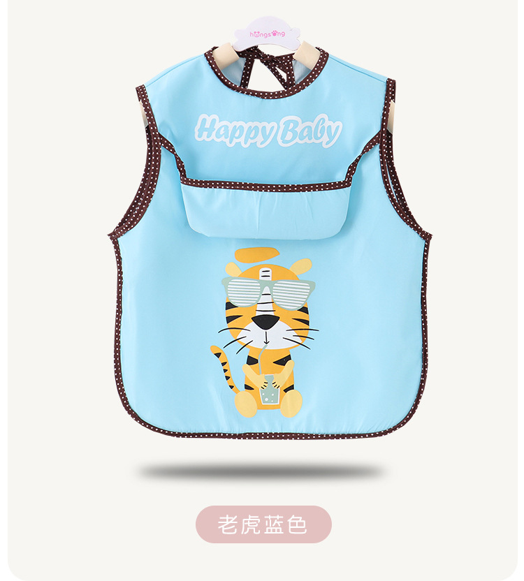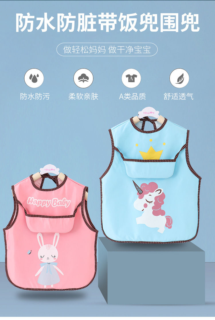 【做轻松妈妈 做干净宝宝】儿童罩衣夏季防水婴幼儿围裙围兜无袖反穿衣宝宝吃饭画画衣带饭兜