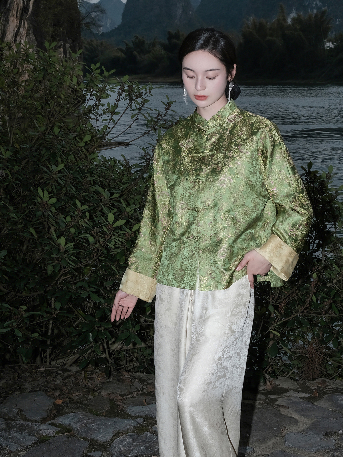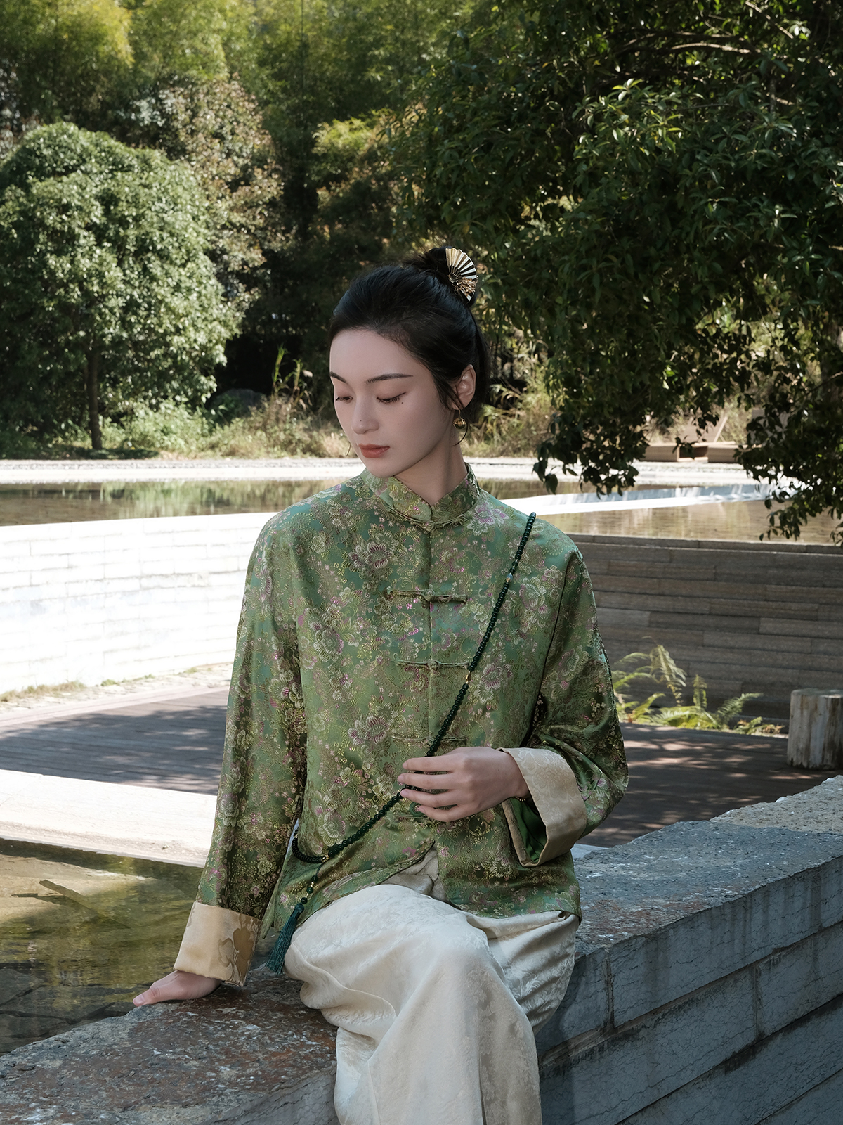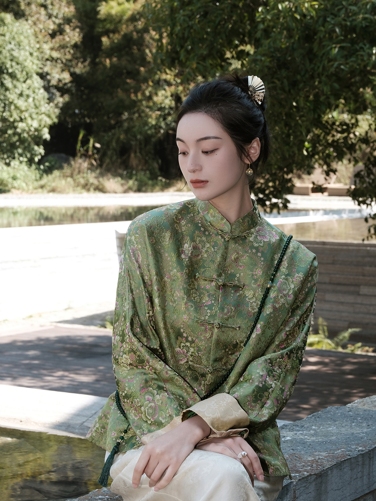 盛唐婧 |限量款宋锦老料繁花对襟外套